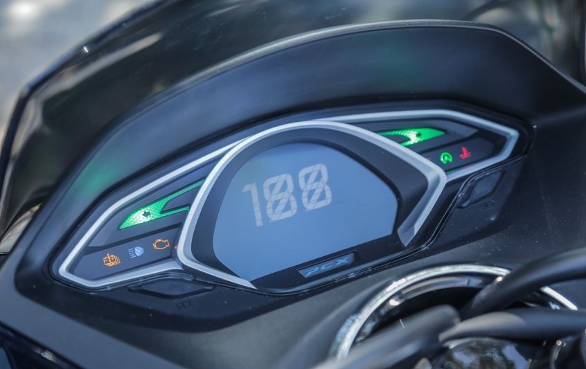 PCX150配備了一個(gè)大的單色LCD面板,顯示必要的信息,這些數(shù)字在大多數(shù)照明條件下都可以清晰易讀。