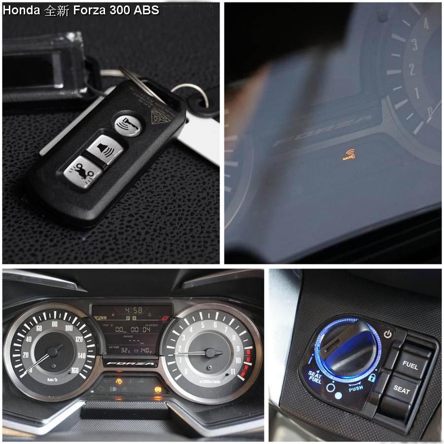Forza 300配備了智能keyless車匙 ,并具有尋車功能,無鑰匙啟動旋鈕還有背光夜間也能清晰可見。儀表盤為汽車級雙環(huán)機(jī)械儀表,中央部分搭配單色LED顯示屏,可以顯示更多車輛狀態(tài)信息。