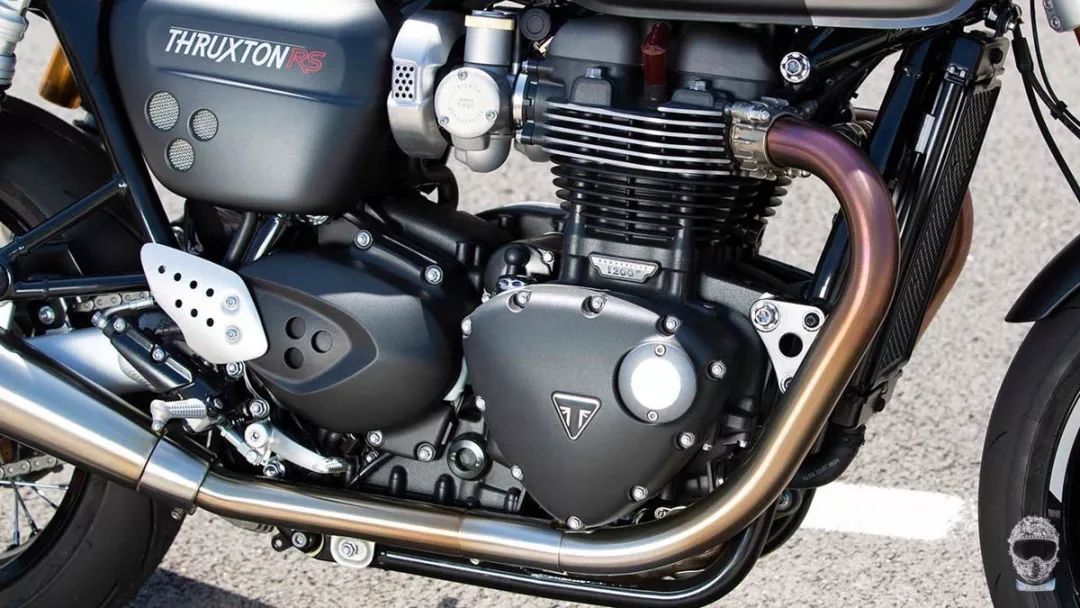 TRIUMPH Thruxton RS在外觀上相較Thruxton差異不大,使用的引擎也是同一具1,200c.c.水冷并列雙缸引擎,然而,經(jīng)過原廠針對(duì)性能方向的調(diào)整,它的輸出提升了將近10%,在7,500 rpm時(shí)可發(fā)揮最大105ps的馬力,較Thruxton 97ps的最大馬力提升不少。同時(shí),車重也減輕了6kg,使它的干重為197kg,馬力提升,車重下降,Thruxton RS進(jìn)而獲得更好的馬力重量比。