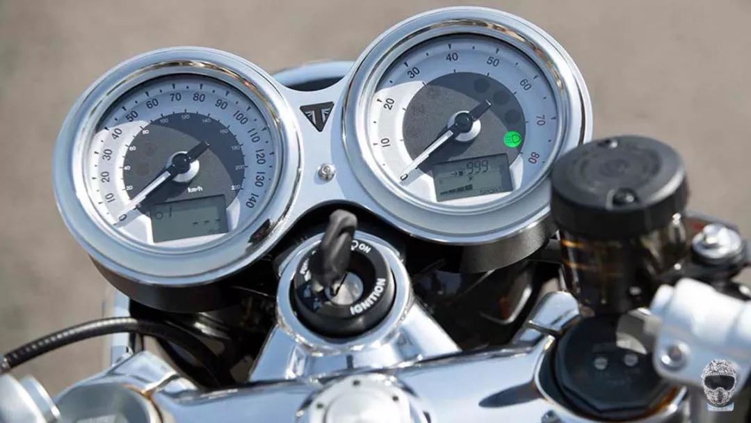 在扭力方面,Thruxton RS可在4,250rpm時(shí)產(chǎn)生112Nm的最大扭力,峰值雖然未見提升,但相較過往在4,950 rpm時(shí)方才涌現(xiàn)的最大扭力,RS版本提早了700rpm便開始涌現(xiàn),而儀表上的紅線區(qū)也較過往提高了500 rpm。