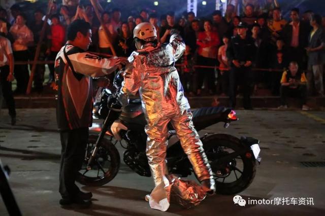 當(dāng)晚胡娃麗在晚會(huì)現(xiàn)場(chǎng)幾百位觀眾的見證下駕駛CBF190TR成功穿越18米長(zhǎng)火墻,創(chuàng)造大世界基尼斯記錄,現(xiàn)場(chǎng)觀眾都被為車手的勇氣感染,為她鼓舞吶喊。