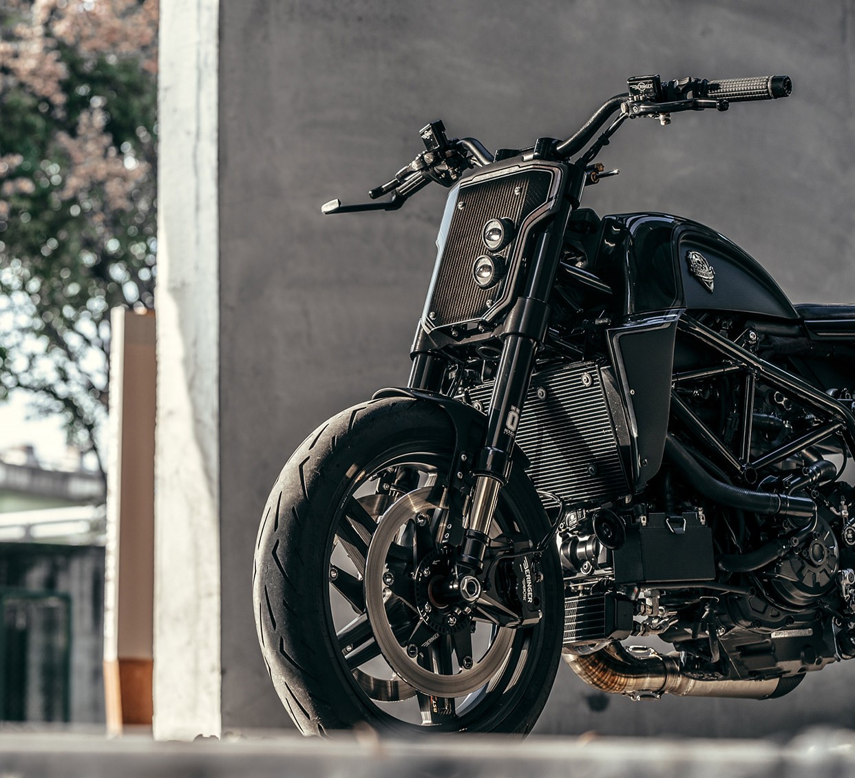 前臉有一種集成式前照燈,其中有一對(duì)Koso燈作為照明任務(wù),信號(hào)燈選自Rizoma。