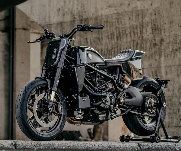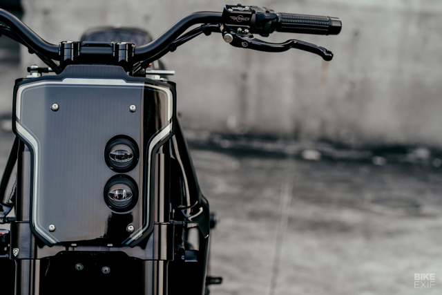 工匠團(tuán)隊(duì)?wèi)?yīng)客戶(hù)要求更改了Hypermotard原型,首先在電腦中創(chuàng)建構(gòu)思以獲取正確的比例,然后將前懸架設(shè)置為比標(biāo)準(zhǔn)懸架短2英寸。