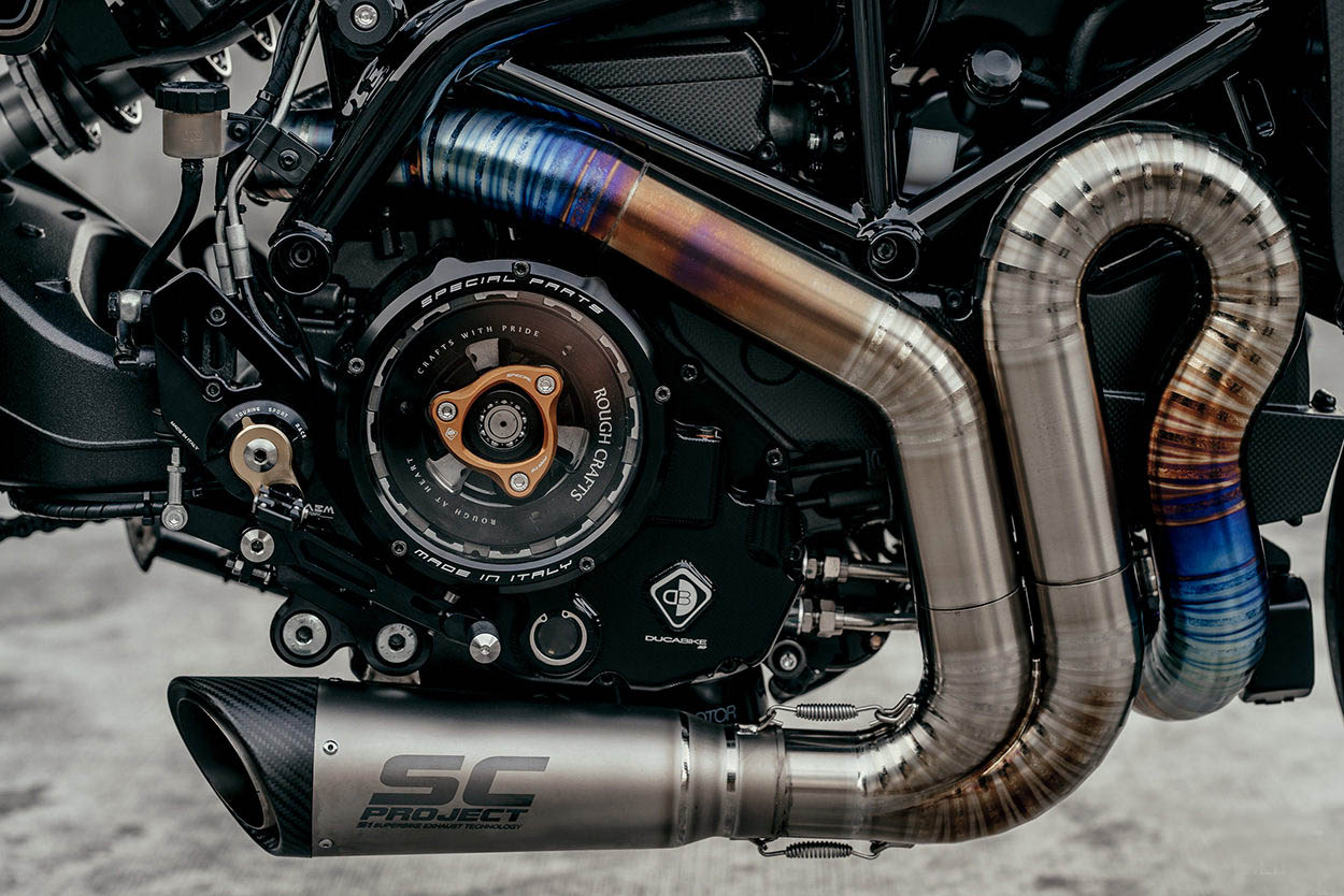 改裝團(tuán)隊(duì)還與CNC Racing合作創(chuàng)建了特殊的CNC Racing x Rough Crafts產(chǎn)品,即離合器和腳套。接下來(lái),挑選了SC Project S1消聲器,然后由Tron Racing做出了相應(yīng)的設(shè)計(jì)。