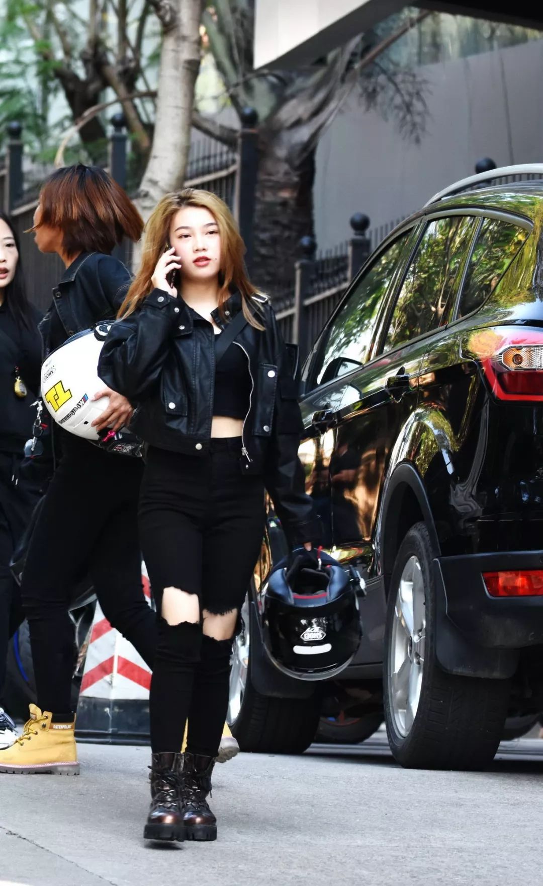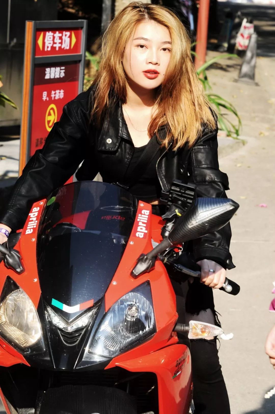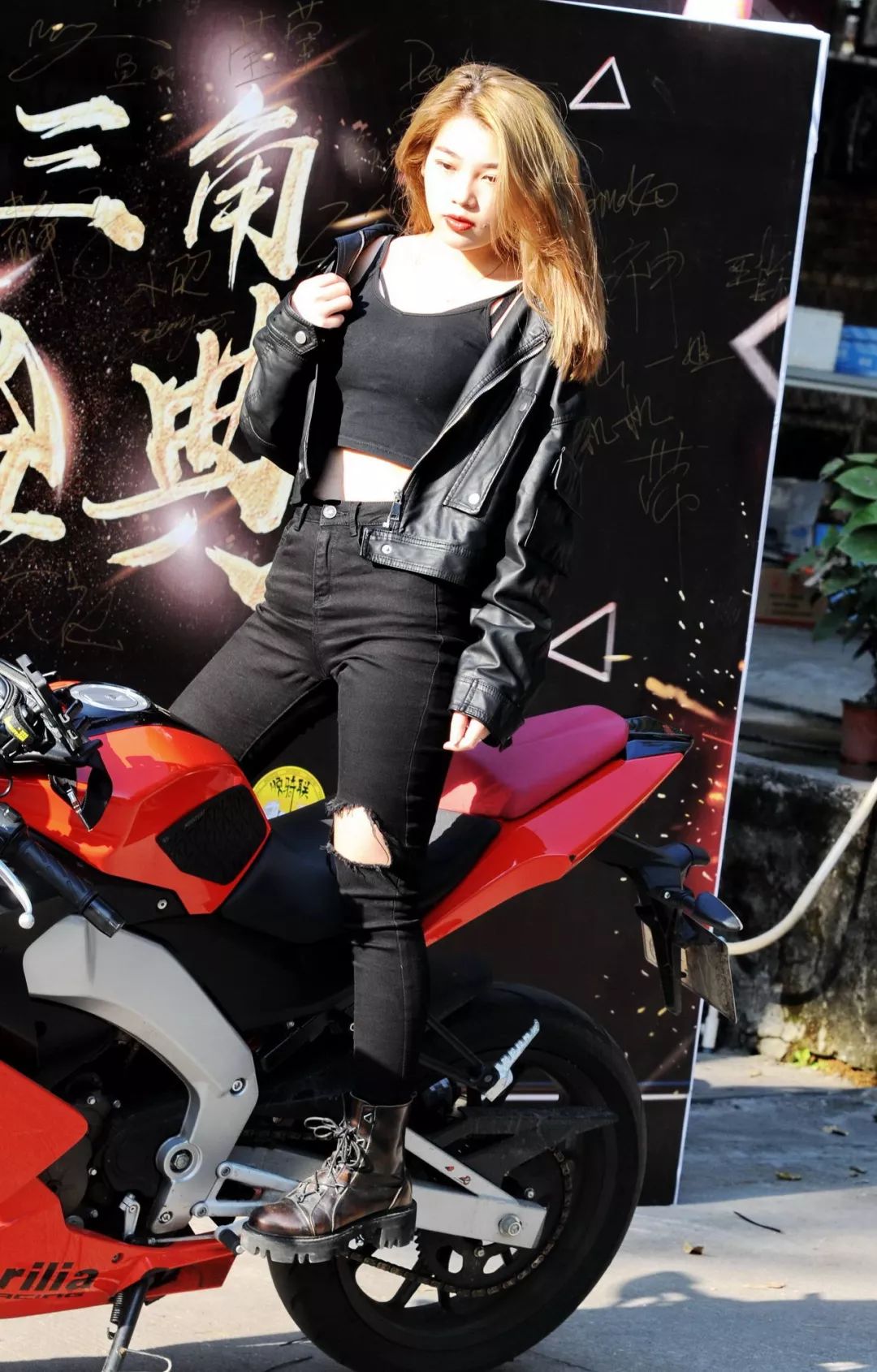 下面的圖片,活動的現(xiàn)場,一位駕駛著跑車遠道而來的女騎士。