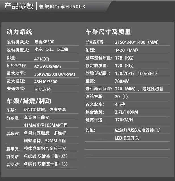 拋開別的不說,單說隆鑫KE500這臺(tái)發(fā)動(dòng)機(jī),在國產(chǎn)500cc發(fā)動(dòng)機(jī)當(dāng)中綜合實(shí)力還是非常強(qiáng)悍的。恒艦500X目前也已經(jīng)有國四版本,售價(jià)29800元,這個(gè)價(jià)格對(duì)于主流的500cc國產(chǎn)拉力摩托而言要便宜一些。如果是非常喜歡本田CB500X的朋友,但是預(yù)算又相對(duì)比較緊張,那么就到了這臺(tái)車發(fā)揮作用的時(shí)候。
