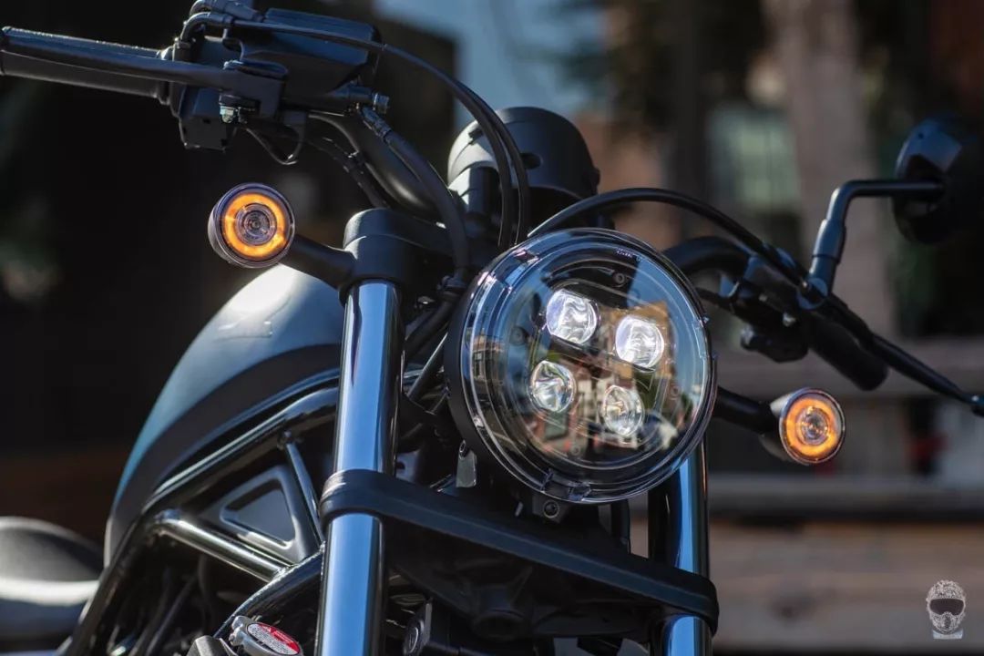 HonDA REBEL通過高度極低的車架,搭配前130/90-16、后150/80-16的厚胎,視覺感受確實不輸其他老大哥們,而本次的改款中則是導(dǎo)入全車LED光源燈組,格外有精神的頭燈組讓人一見傾心。