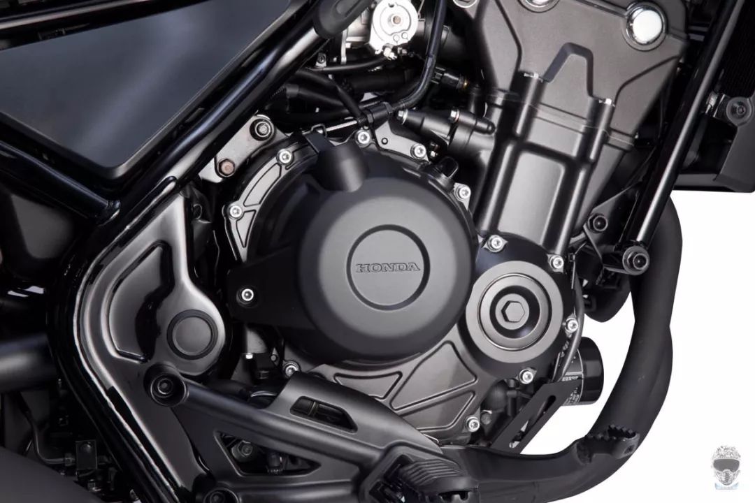 HonDA Rebel使用了與同廠街跑車款CBR500R相同的471c.c.八氣門水冷并列雙缸引擎,但經(jīng)過原廠不同的調(diào)較,Rebel能在更低的轉(zhuǎn)速發(fā)揮更大的扭力,數(shù)據(jù)上,在6,000rpm時即可達到最大扭力43Nm,46ps的最大馬力則可在8,000rpm時完全釋放。這樣的調(diào)較讓它更符合美式巡航車的風格和定位。