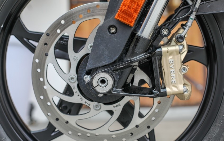 在制動(dòng)方面,由Brembo的低價(jià)品牌Bybre提供,前300 mm圓盤匹配徑向安裝的四活塞卡鉗,而后制動(dòng)是直徑240 mm的圓盤,匹配單活塞卡鉗,并且有可切換的雙通道ABS。
