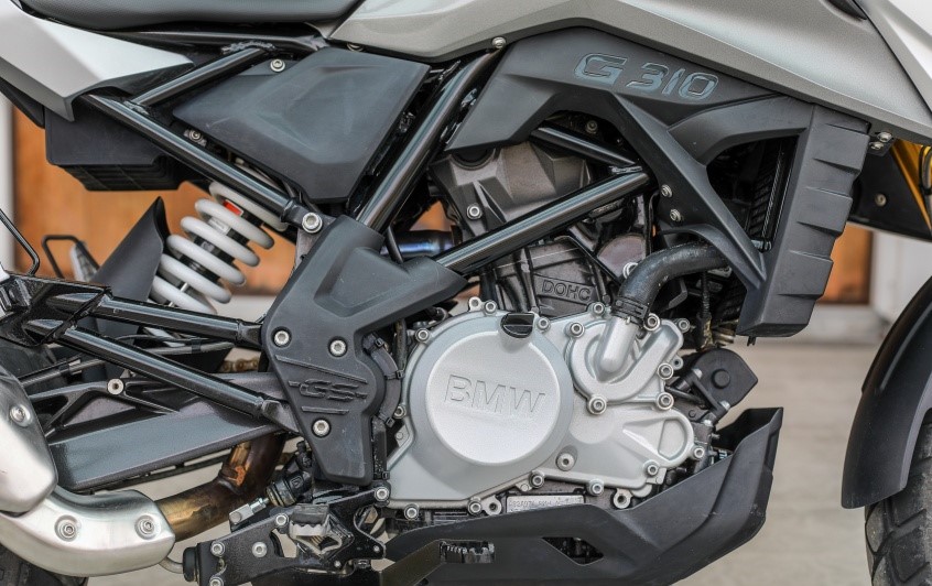 寶馬310使用通用的格柵框架,兩臺(tái)310的發(fā)動(dòng)機(jī)也完全相同,313cc的單缸DOHC水冷發(fā)動(dòng)機(jī)(每缸四氣門),最大功率34 hp馬力,最大扭力28 Nm。310 GS加滿燃油之后,重量也僅有169.5kg,而R型號(hào)的重量則要輕11kg,為158.5kg。