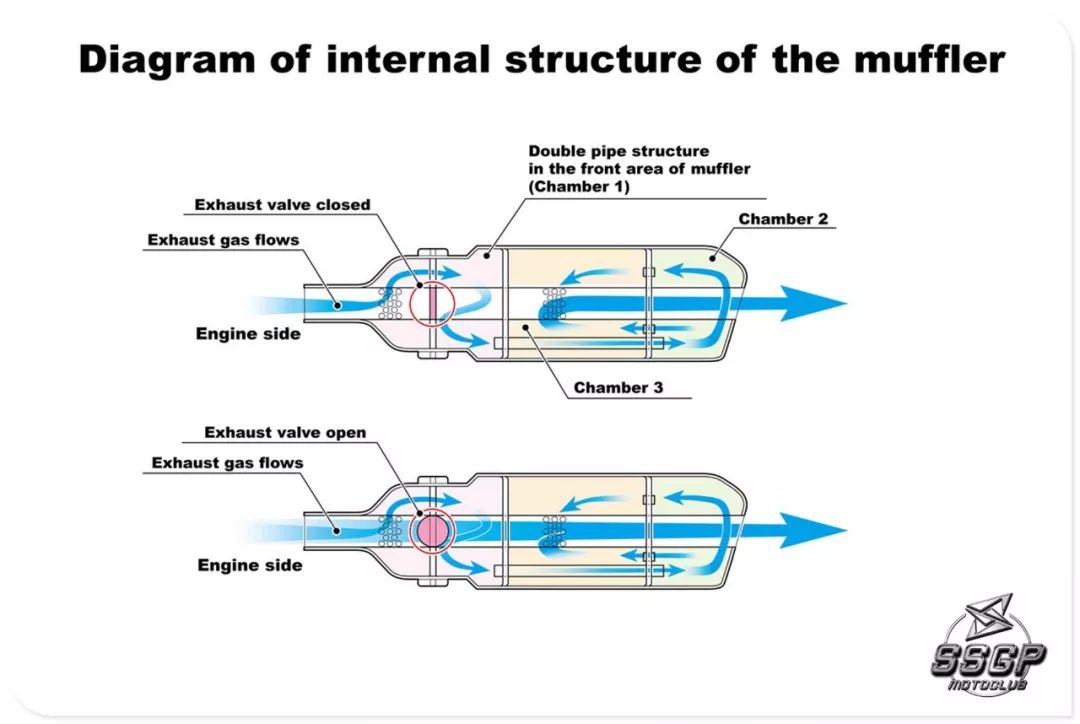 達(dá)到更好的排氣效率、應(yīng)付環(huán)保法規(guī)、減少噪音。舉2017年HonDA CBR1000RR 為例,于排氣管尾段設(shè)置閥門,透過(guò)閥門的開(kāi)閉來(lái)控制各轉(zhuǎn)速域的回壓,能使引擎輸出達(dá)到最佳效率,雖然官方主打增加引擎效率,但主要還是為了因應(yīng)環(huán)保法規(guī),利用閥門來(lái)控制排氣與噪音音量,以通過(guò)嚴(yán)苛的環(huán)保法規(guī)。