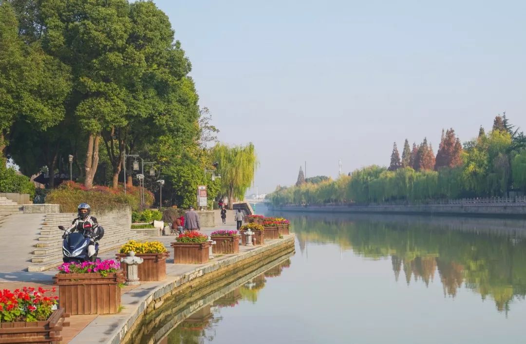 東關(guān)古渡的階梯上,還修建了斜坡,電動(dòng)車(chē)、摩托車(chē)可以直接開(kāi)到運(yùn)河邊上,于是我們體驗(yàn)了一把在古運(yùn)河邊騎行的感覺(jué),迎著初升的朝陽(yáng),駕駛現(xiàn)代科技的摩托車(chē),在千年大運(yùn)河邊騎行,仿佛穿越歷史,這種體驗(yàn)很特別,機(jī)會(huì)實(shí)在難得。