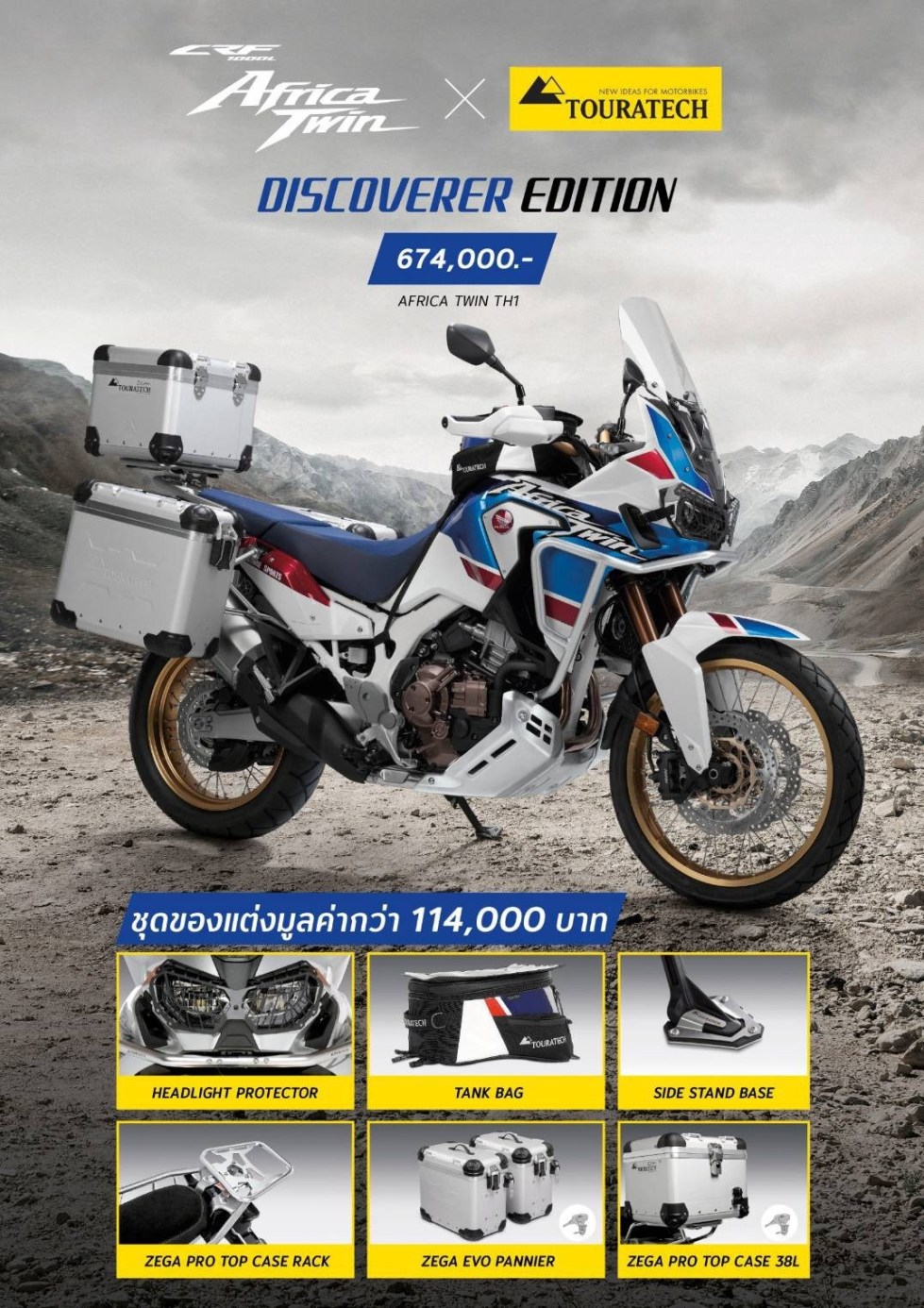 第一個(gè)是本田非雙Africa Twin Discoverer Edition,它配備了著名品牌Touratech的配件,總價(jià)值超過114,000泰銖(26,470元人民幣)。此版本僅在泰國市場出售,僅限量30臺(tái),價(jià)格為674,000泰銖(156,500人民幣)。