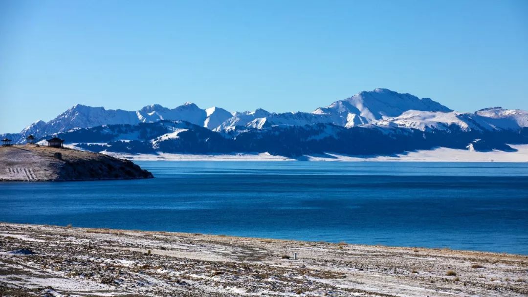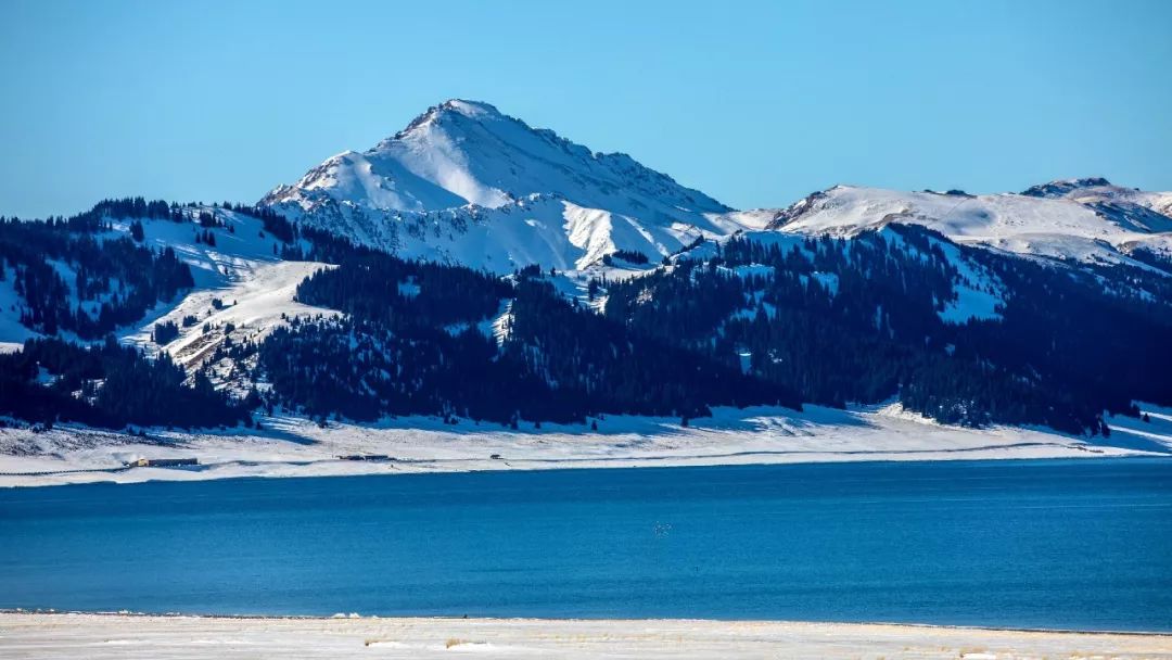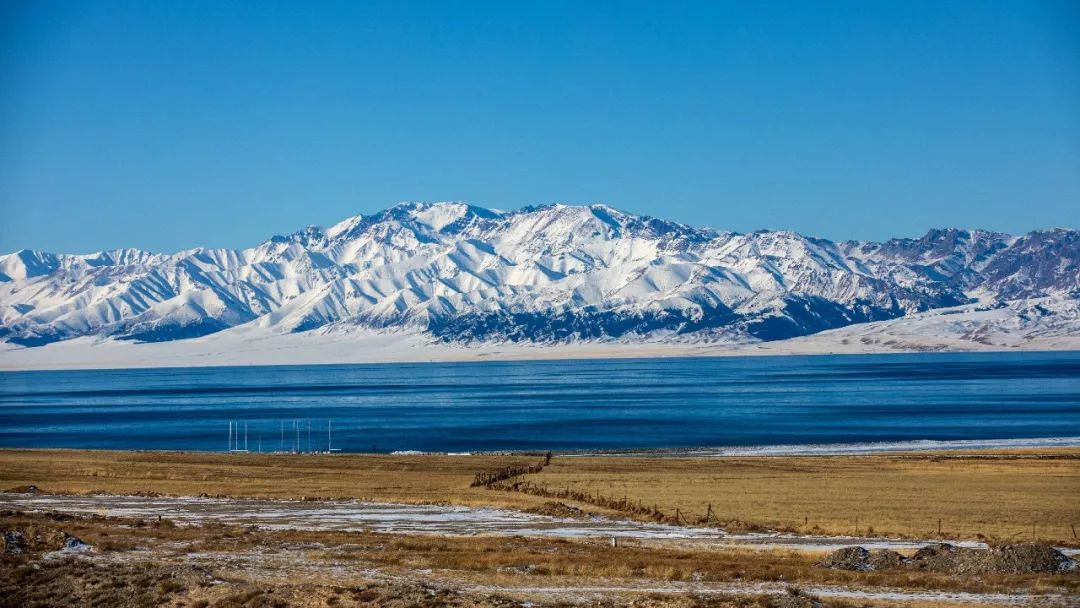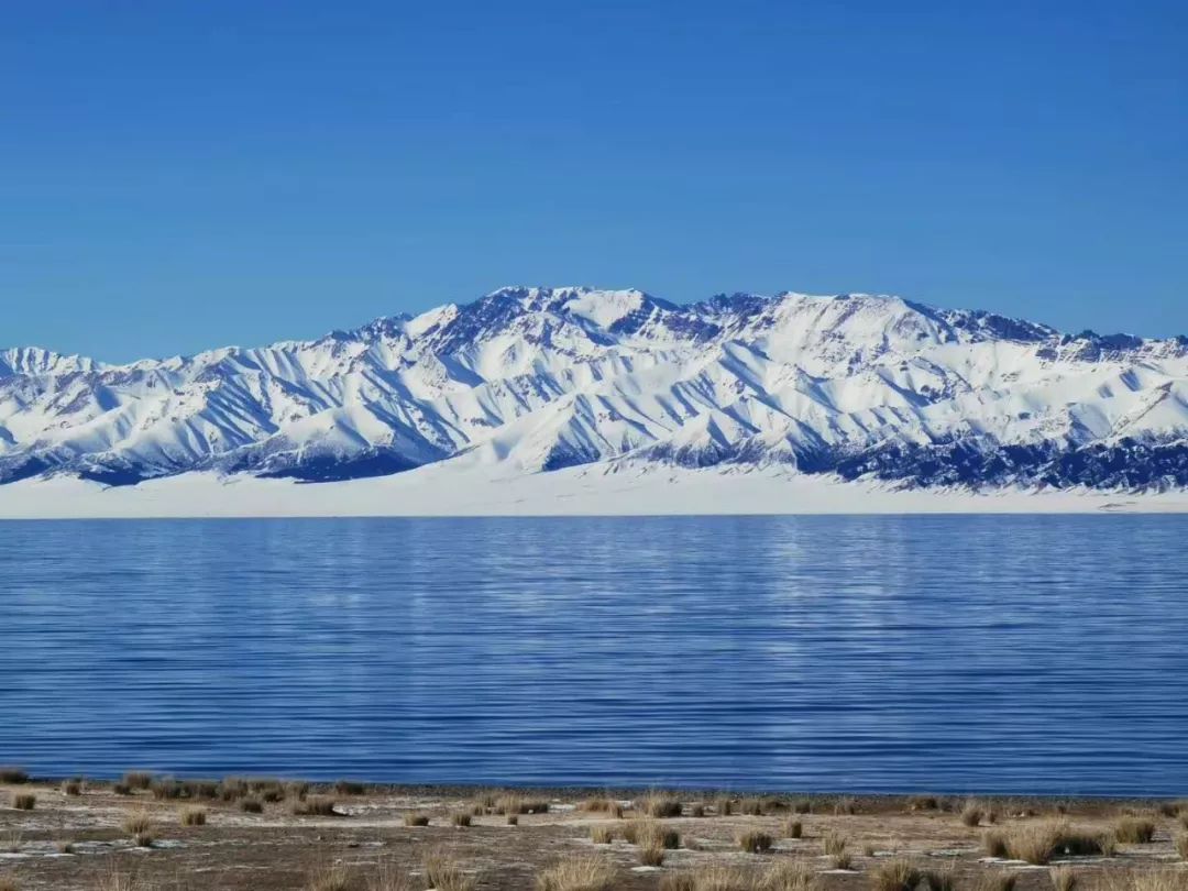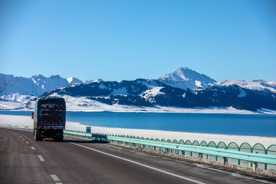 行駛了三十公里之后,我們就來到了美麗的賽里木湖,碧藍的湖水和旁邊的雪山形成了一幅天然的畫卷。冬季的賽里木湖幾乎沒有游客,都是前往霍爾果斯口岸的人路過這里?;蛟S人間不值得,但賽里木湖值得。