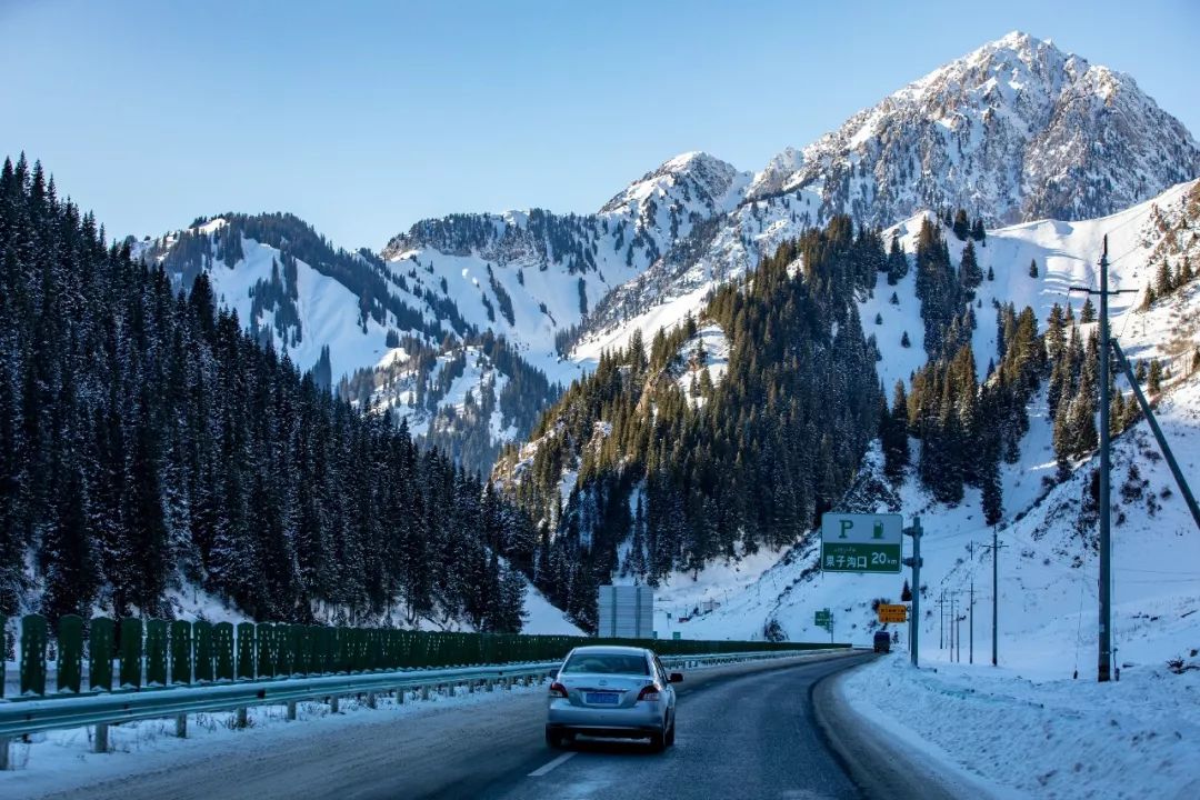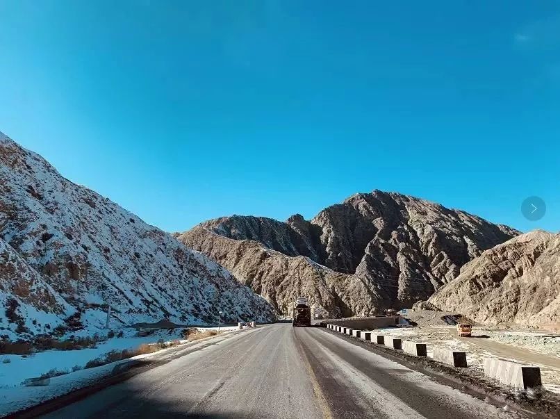 過了檢查站就可以看到遠處的山峰了,上面覆蓋著白雪,但是當我們進山的時候發(fā)現(xiàn)路上已經完全沒有雪了,全部化了。