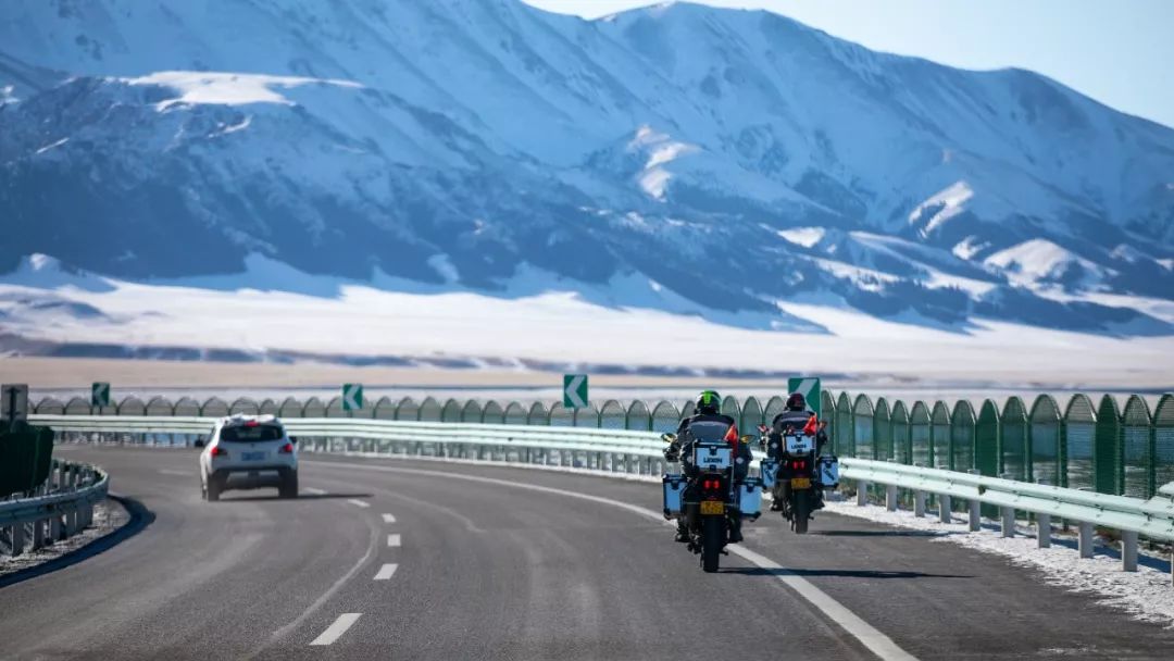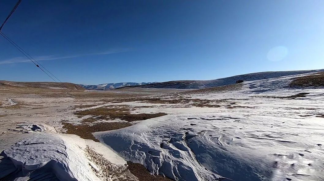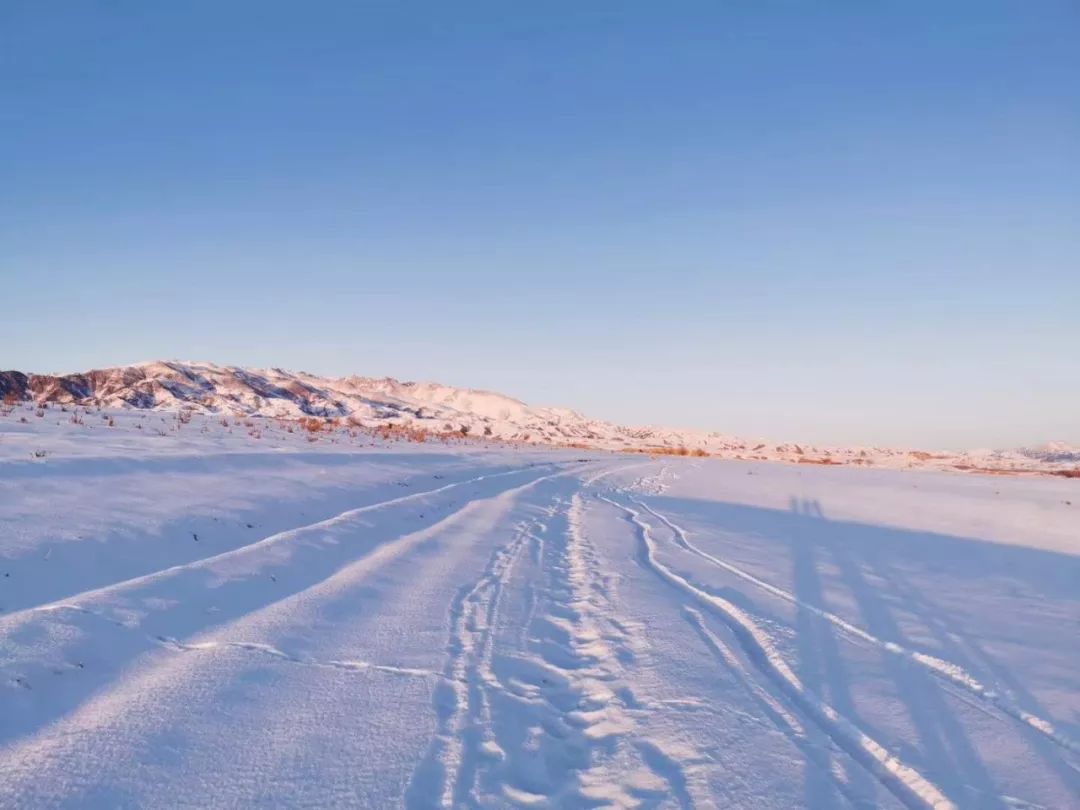 無論經歷多漫長的黑暗,太陽都會照常升起。 即使是新疆氣溫較低,我們大部分出發(fā)的時間都是中午12點,那個時候會稍微暖和一點,從烏魯木齊出來加滿油,開始走了一段國道,路面還有未融化的冰,使得我們也放慢了行駛的速度。