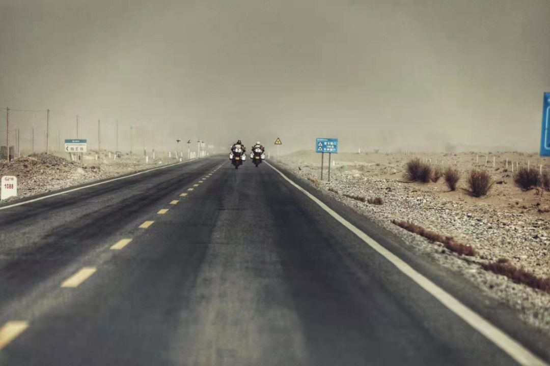 新疆的大風又給我們上了一課,摩托車在沙塵暴中行駛,又是60度傾斜式的騎行,輪胎又是差1厘米滿胎,一整天都在沙塵暴中艱難的騎行。你跟我說你見過的風有多兇、多歹、多狂。我只想說:“朋友,來新疆,讓你感受什么叫風”。