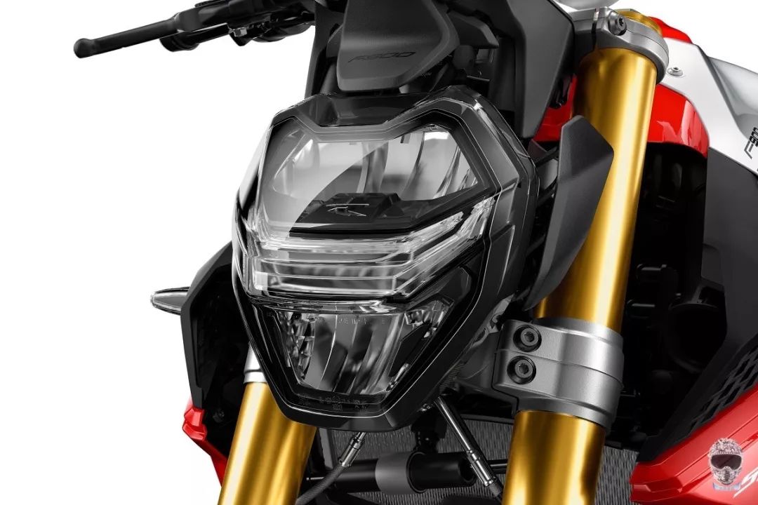 BMW F900R在外觀上讓許多不同方向的線條互相碰撞,從前方看去,造型圓潤(rùn)的頭燈配上的卻是隆起且折線鮮明的油箱及不規(guī)則造型的下擾流及車側(cè)飾板,強(qiáng)烈的視覺(jué)沖擊感貫穿F900R全車,豪放、不拘小節(jié)的設(shè)計(jì)為F900R營(yíng)造了非常特別的視覺(jué)感受。