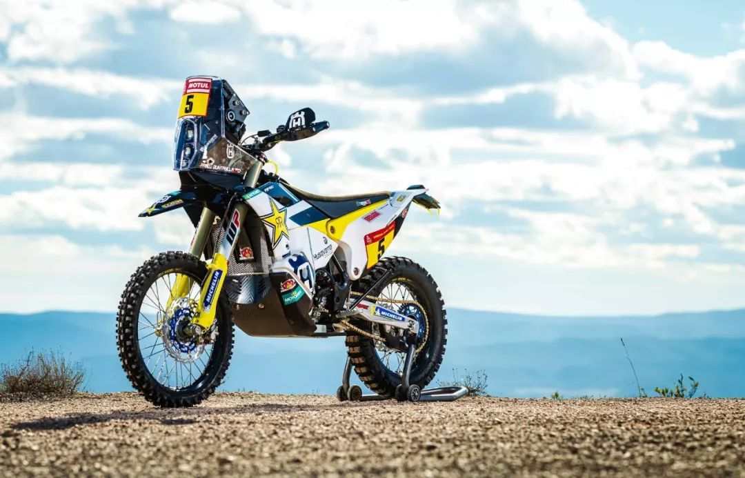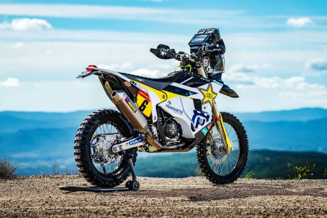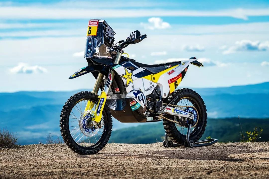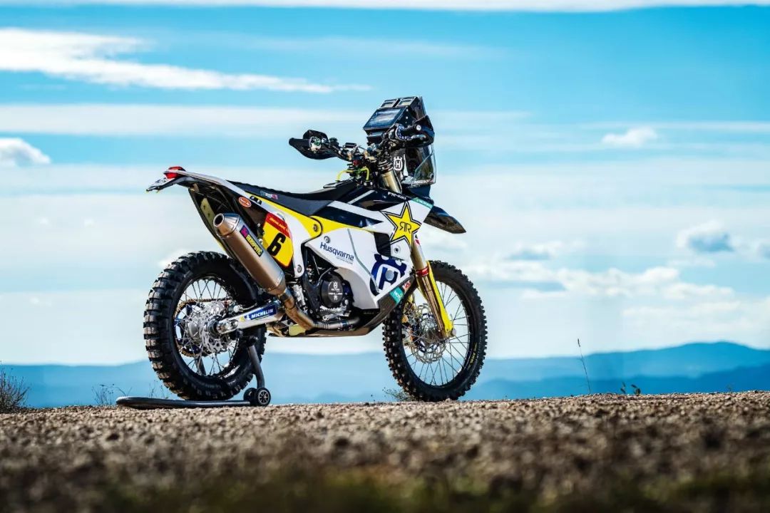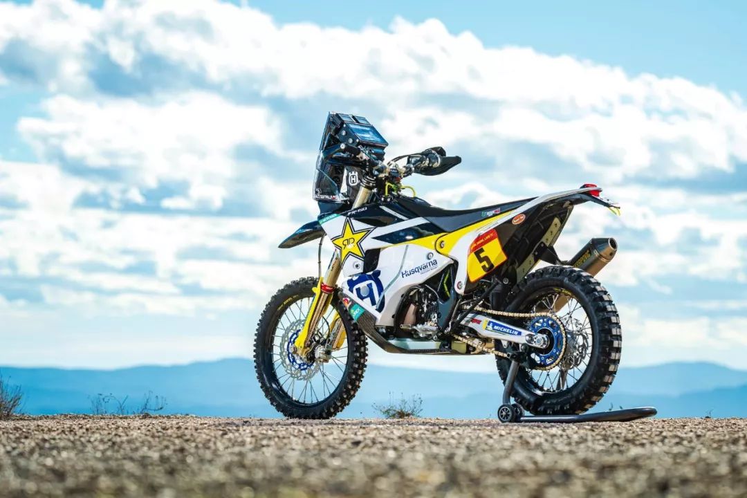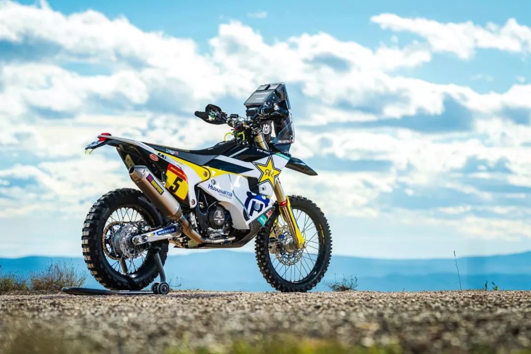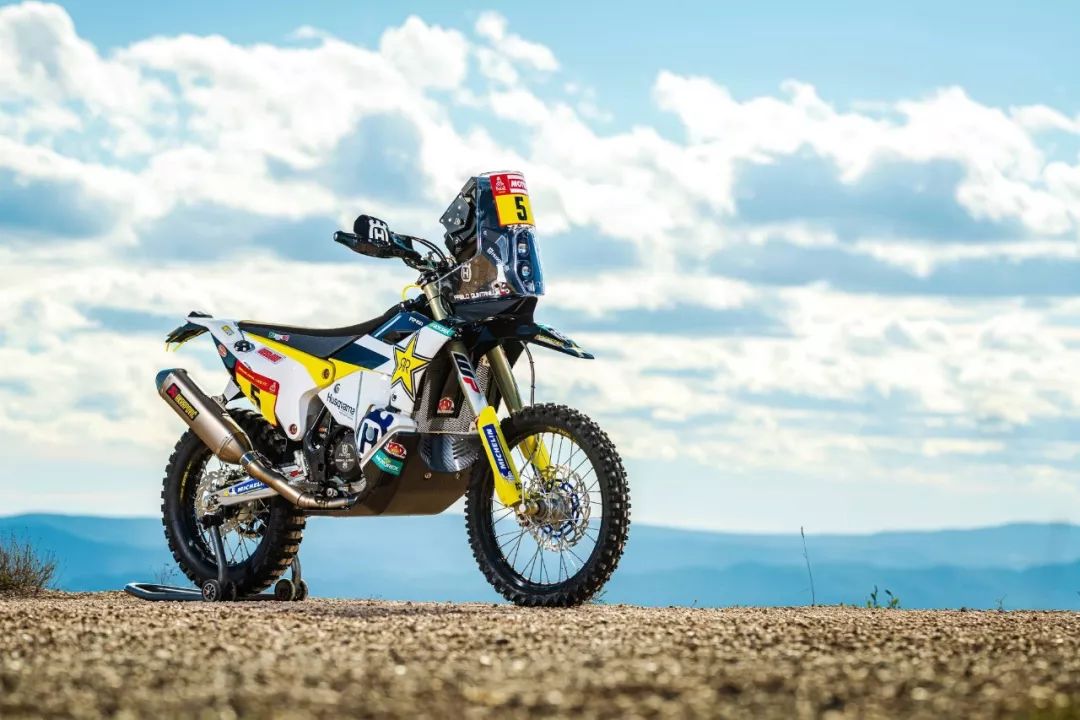 下面的圖片,胡斯瓦那參加 2020' 達(dá)喀爾拉力賽的工廠賽車 FR450 Rally 的特寫(xiě)。其中 5 號(hào)車是智利車手昆塔尼拉(Pablo Quintanilla)的賽車,而 6 號(hào)車是美國(guó)車手肖特(Andrew Short)的座駕。