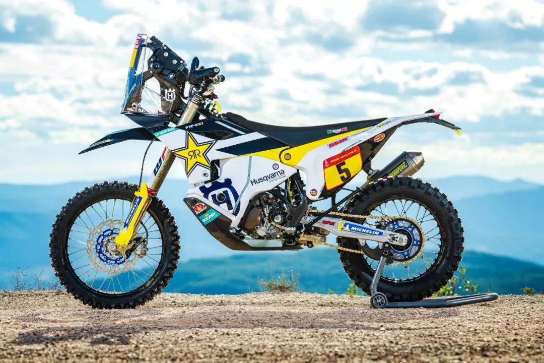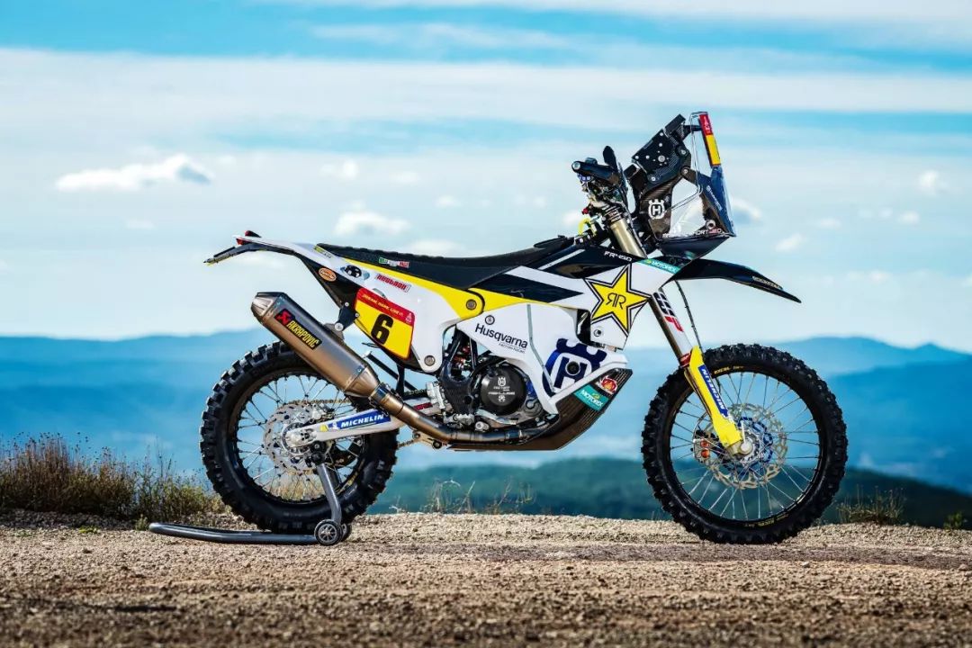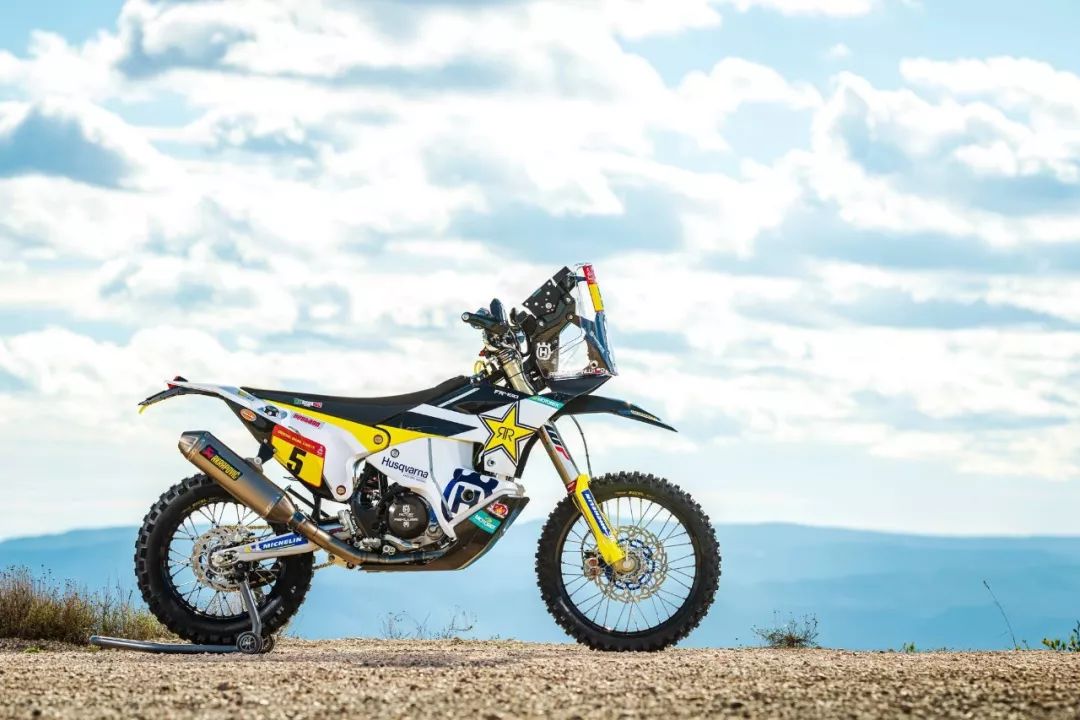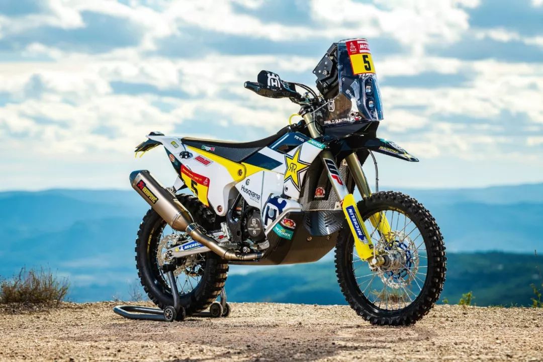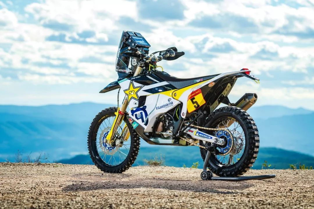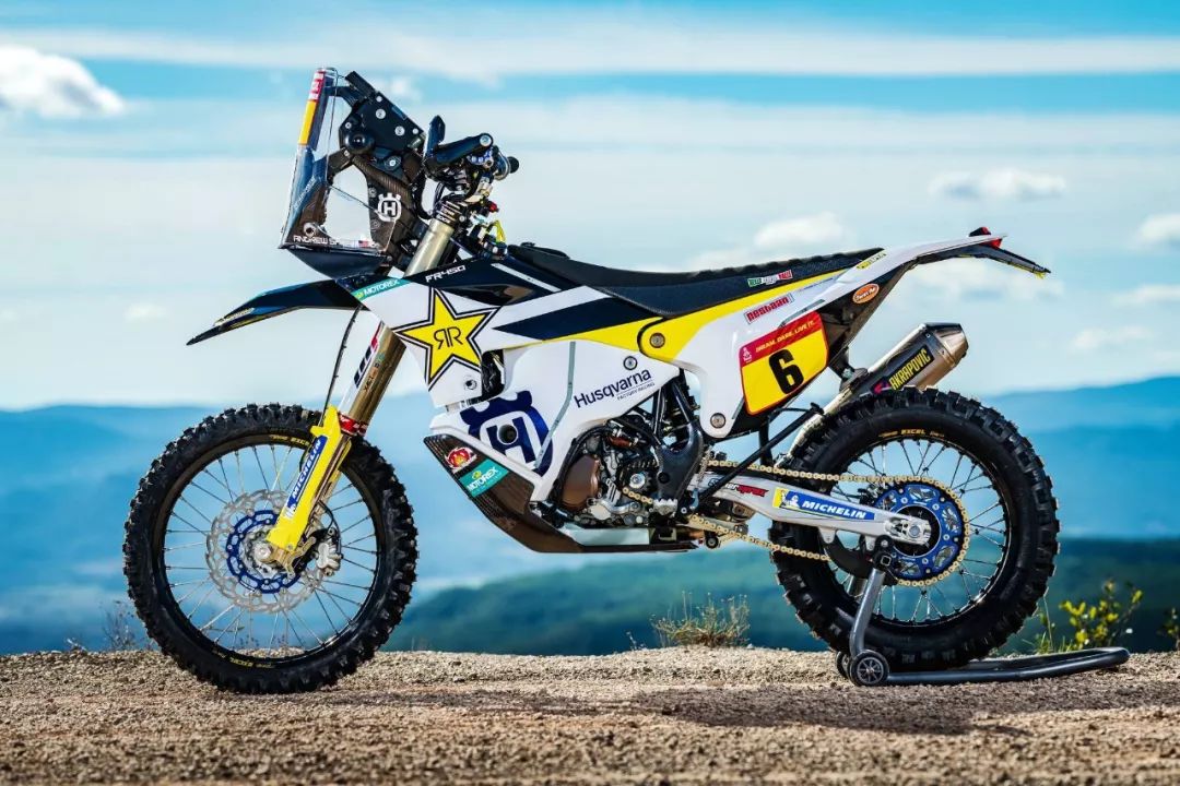 下面的圖片,胡斯瓦那參加 2020' 達(dá)喀爾拉力賽的工廠賽車 FR450 Rally 的特寫(xiě)。其中 5 號(hào)車是智利車手昆塔尼拉(Pablo Quintanilla)的賽車,而 6 號(hào)車是美國(guó)車手肖特(Andrew Short)的座駕。