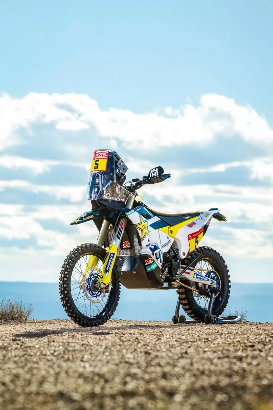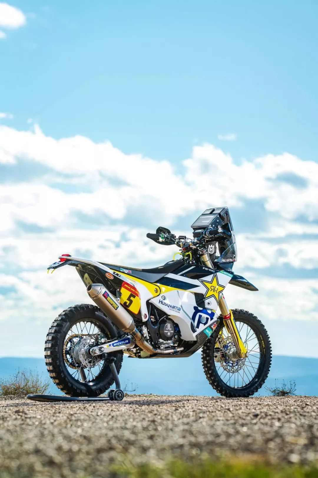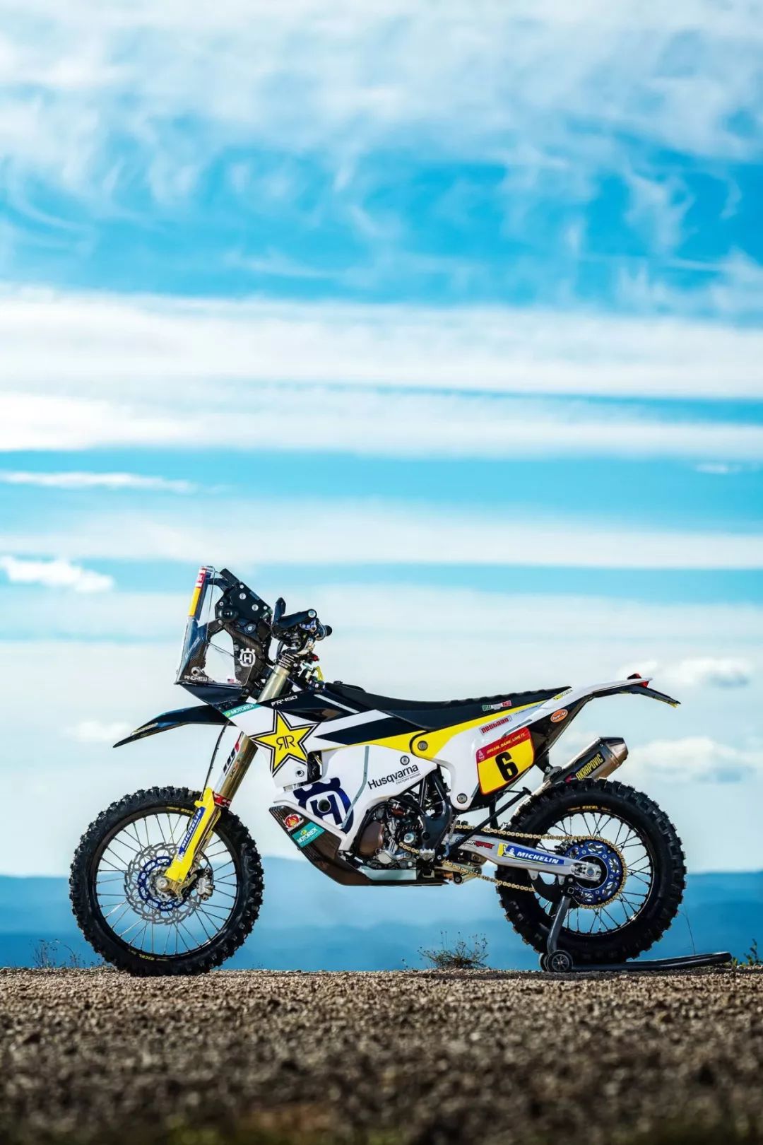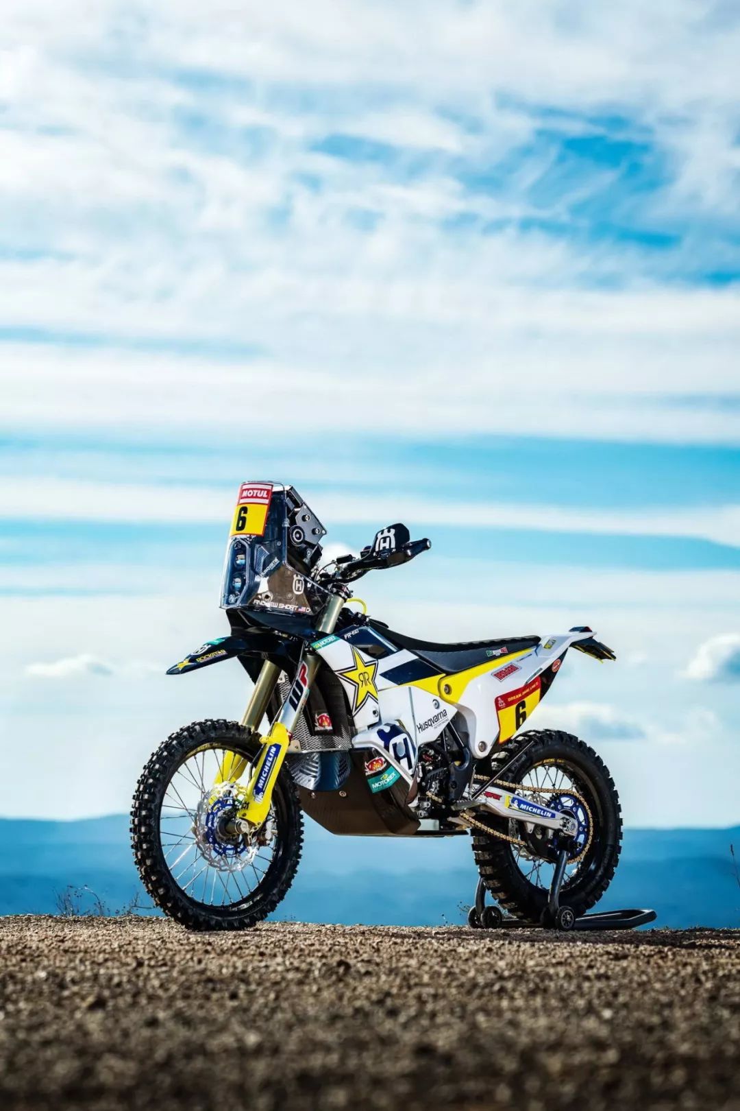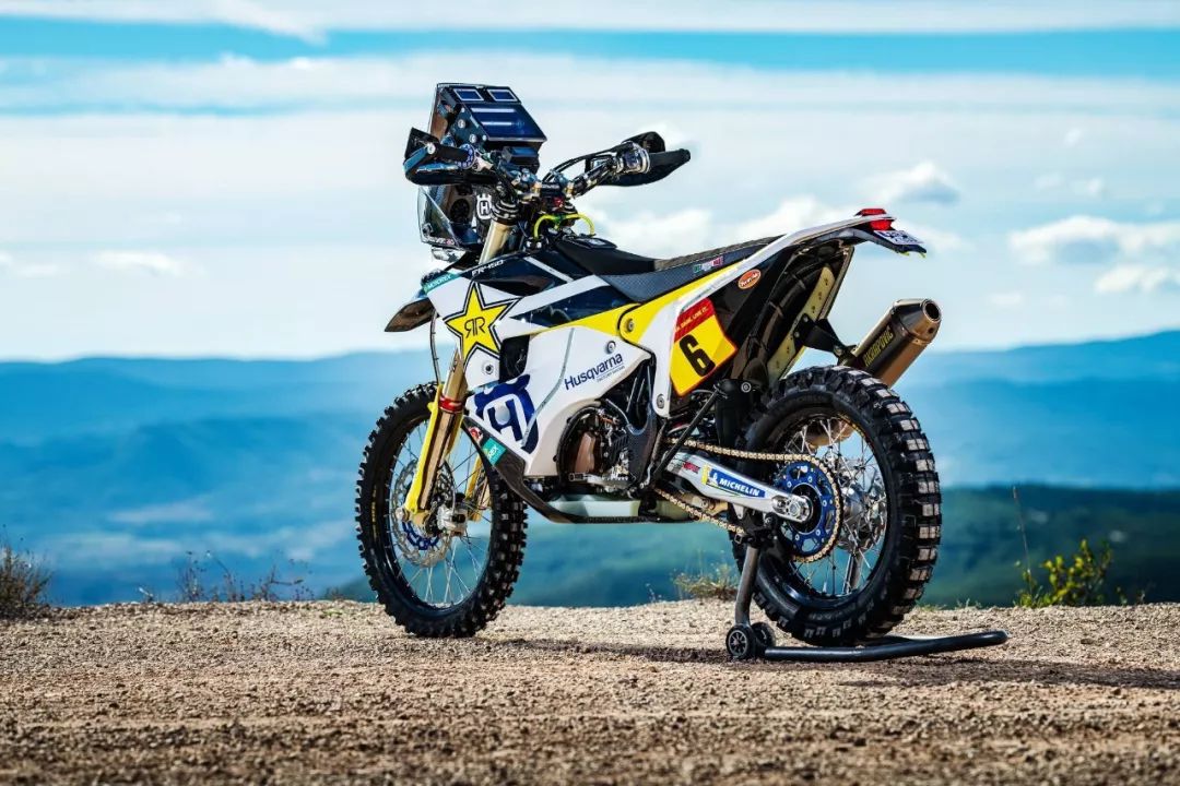 下面的圖片,胡斯瓦那參加 2020' 達(dá)喀爾拉力賽的工廠賽車 FR450 Rally 的特寫(xiě)。其中 5 號(hào)車是智利車手昆塔尼拉(Pablo Quintanilla)的賽車,而 6 號(hào)車是美國(guó)車手肖特(Andrew Short)的座駕。