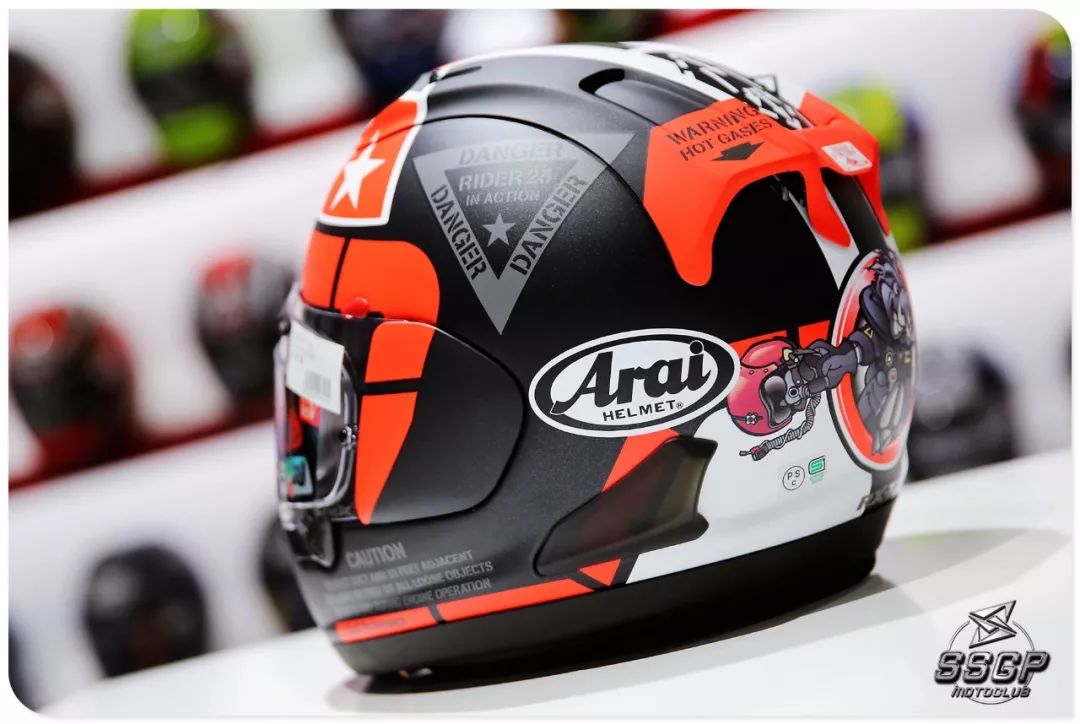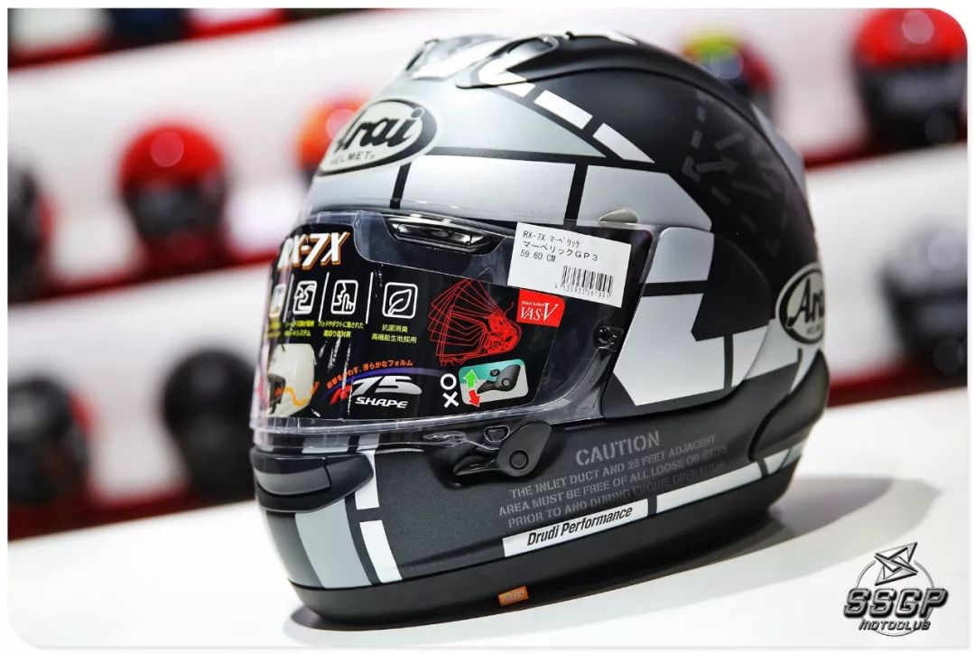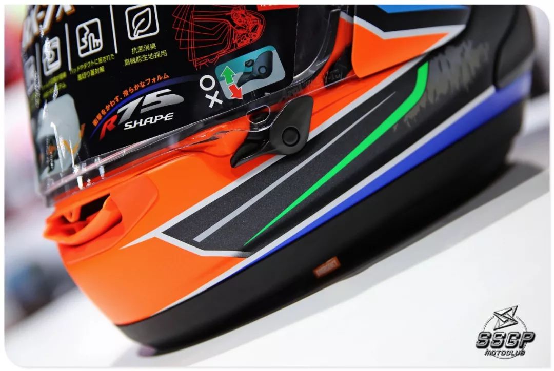 每頂頭盔上都有出現(xiàn)的 R75 醒目標志,是 ARAI 的重點之一……