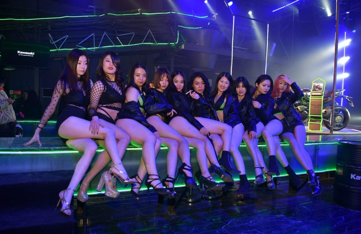 發(fā)布會(huì)邀請(qǐng)不少川崎車主參加,主打夜店風(fēng),現(xiàn)場(chǎng)不僅準(zhǔn)備DJ、舞者、模特兒熱舞狂歡,主角ZX-10R SE與H2 Carbon更就擺放于舞池正中央,同時(shí)在場(chǎng)外布置甚至停放全黑的NISSAN GT-R35作為擺飾,陣仗相當(dāng)盛大。