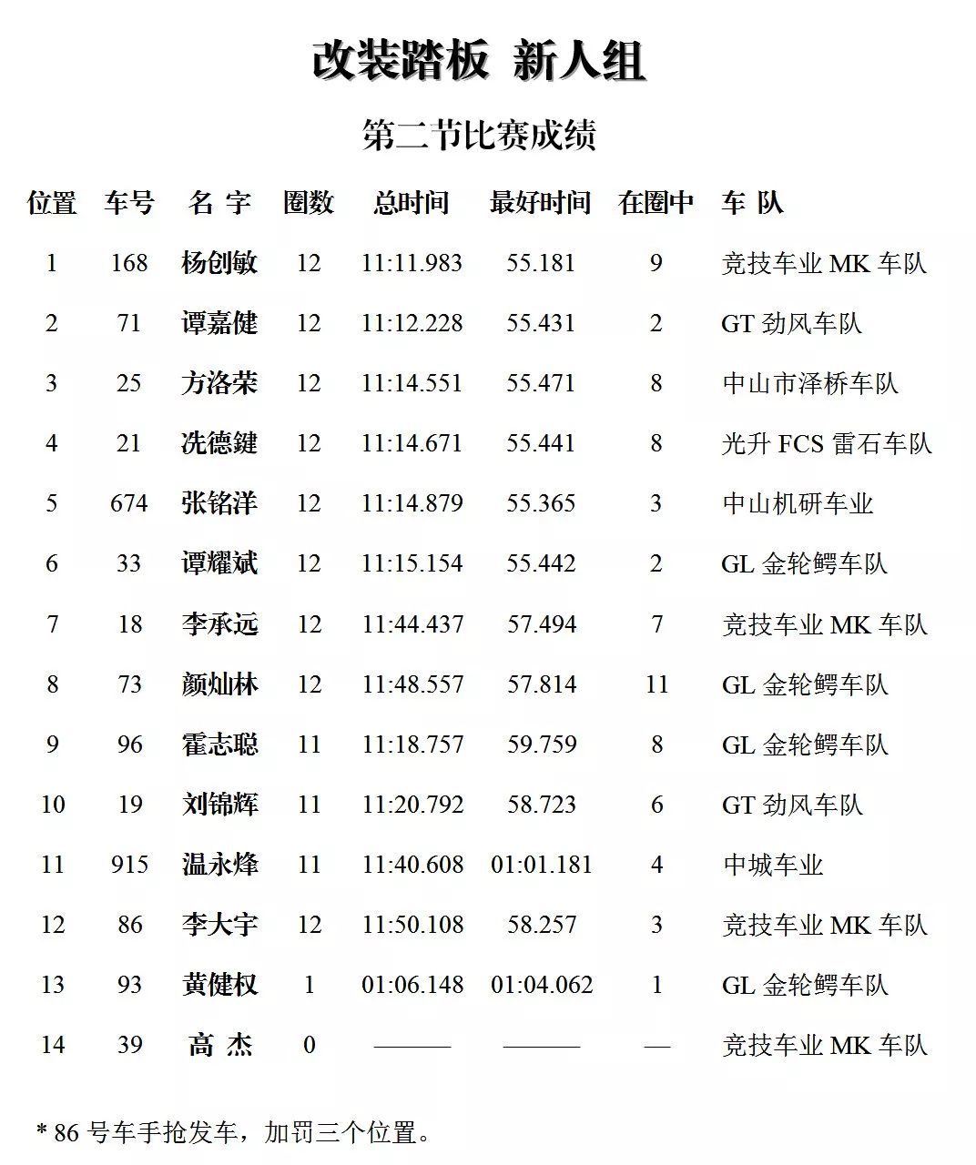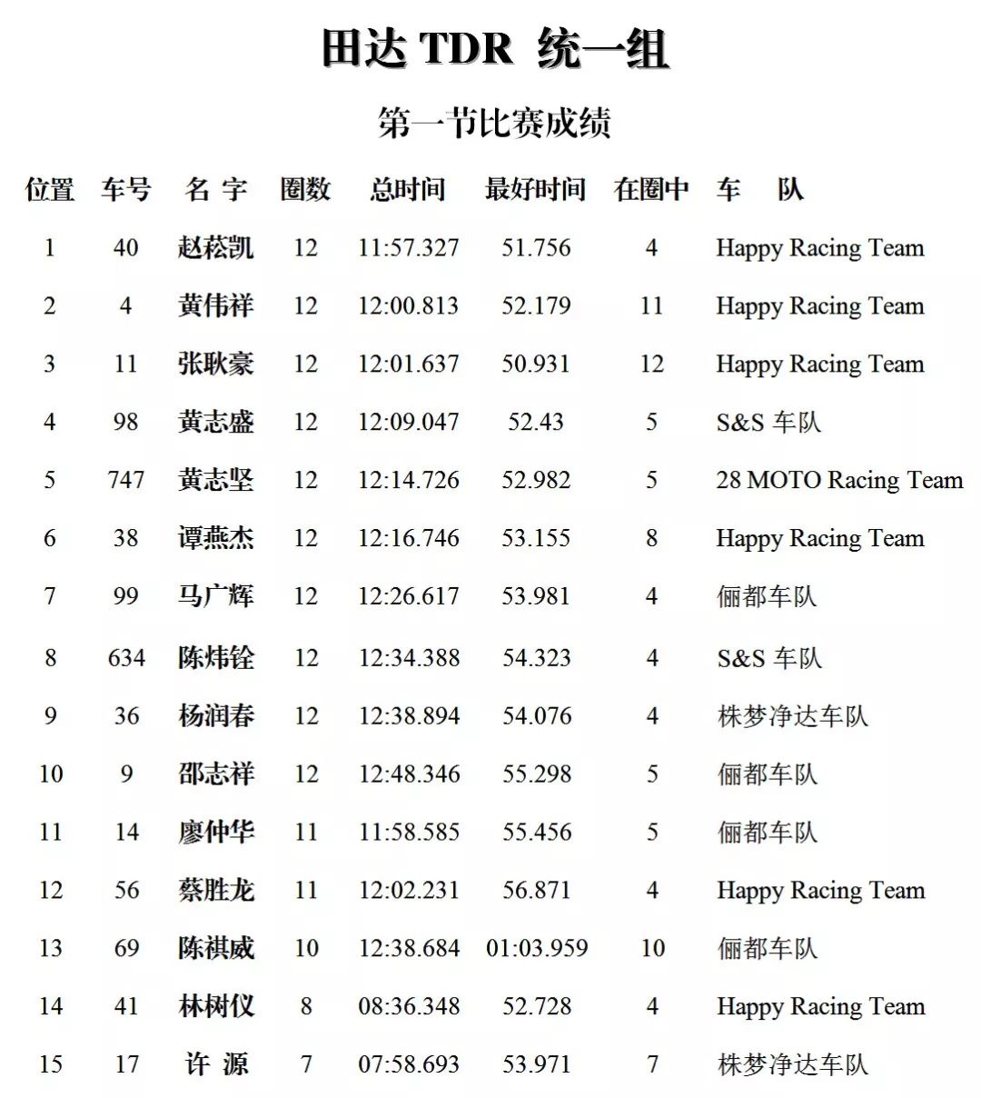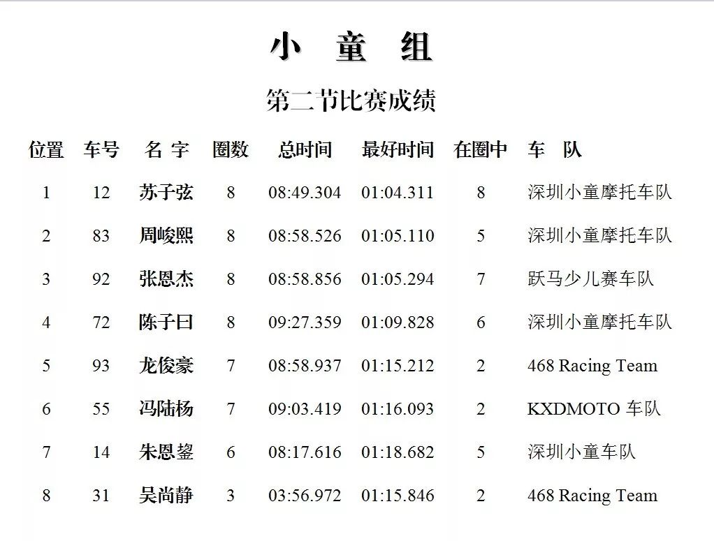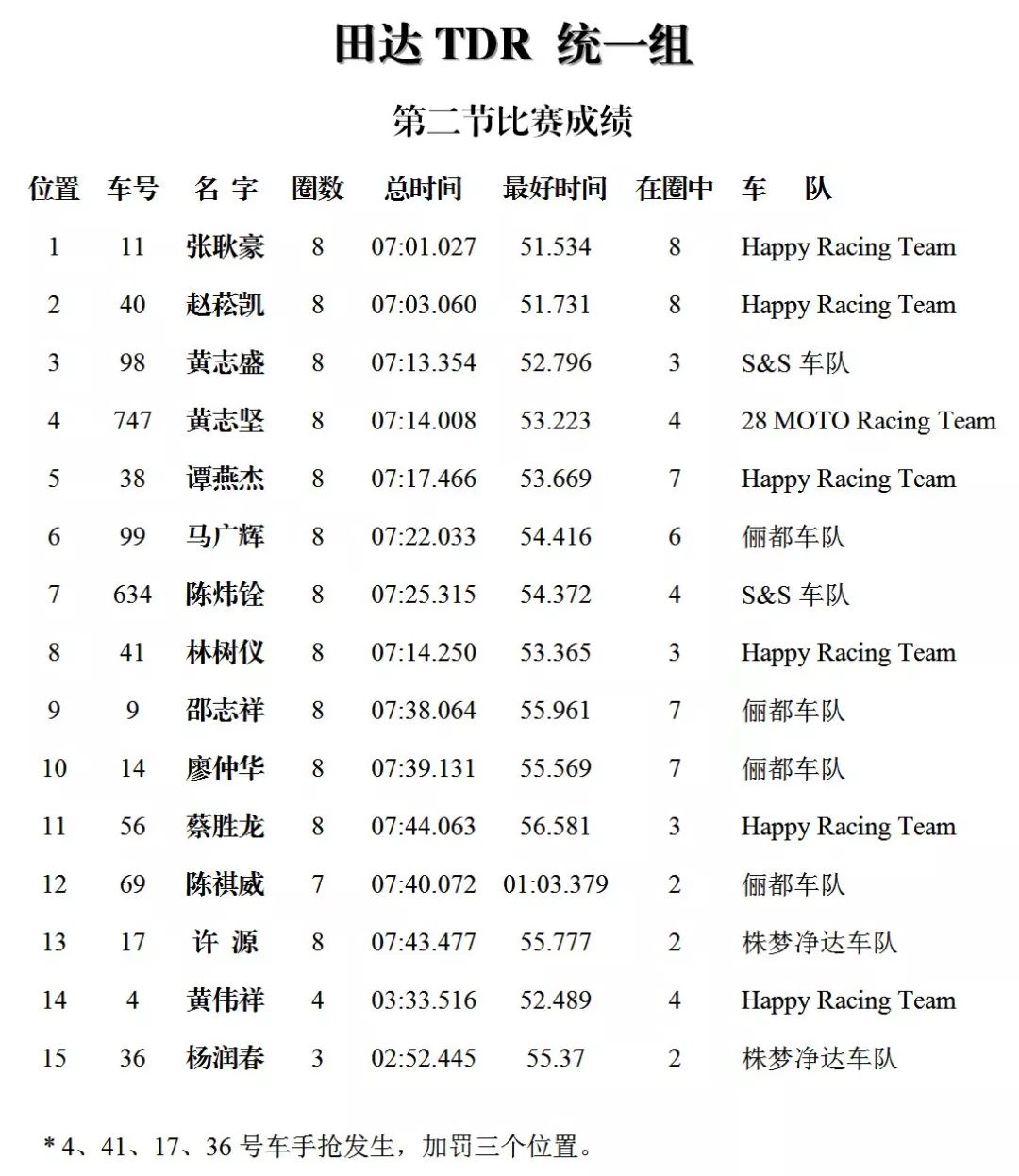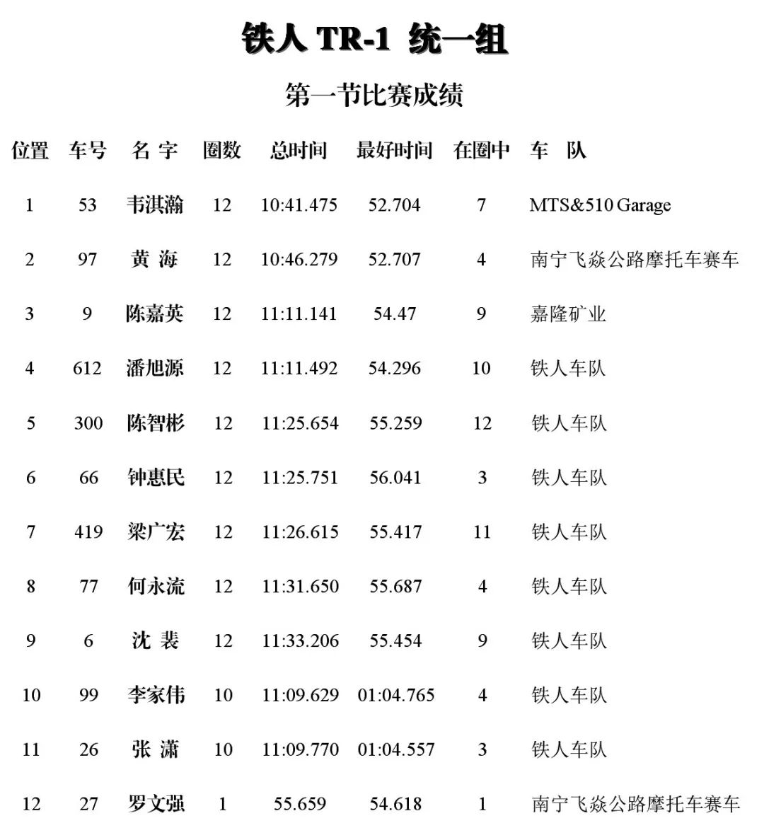 下面的圖片,改裝踏板新人組、鐵人 TR-1 統(tǒng)一組、田達(dá) TDR 統(tǒng)一組、小童組(A、B 組混合),第四回合的比賽成績(jī)、以及全年度總成績(jī)(車手積分榜)。