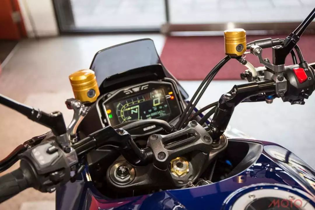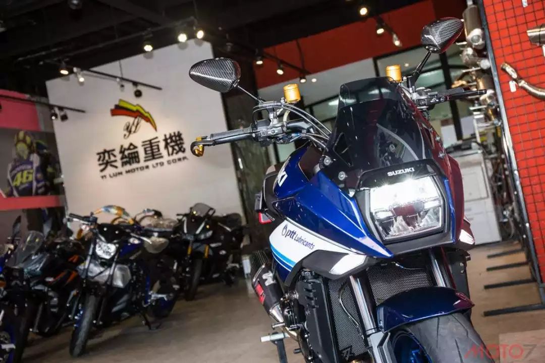 在車頭的部分,這輛KATANA換上了SUZUKI原廠的精品小風(fēng)擋,通過風(fēng)擋的改裝,能提供更好的騎行體驗(yàn),減少騎士在騎乘時(shí)的風(fēng)壓。