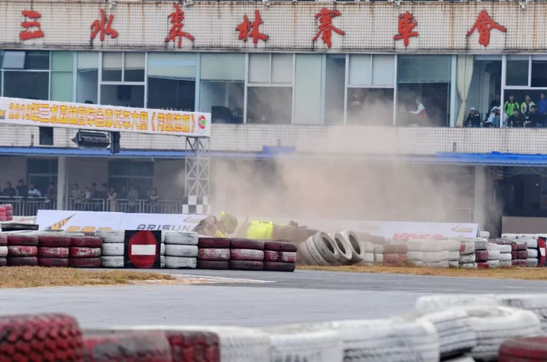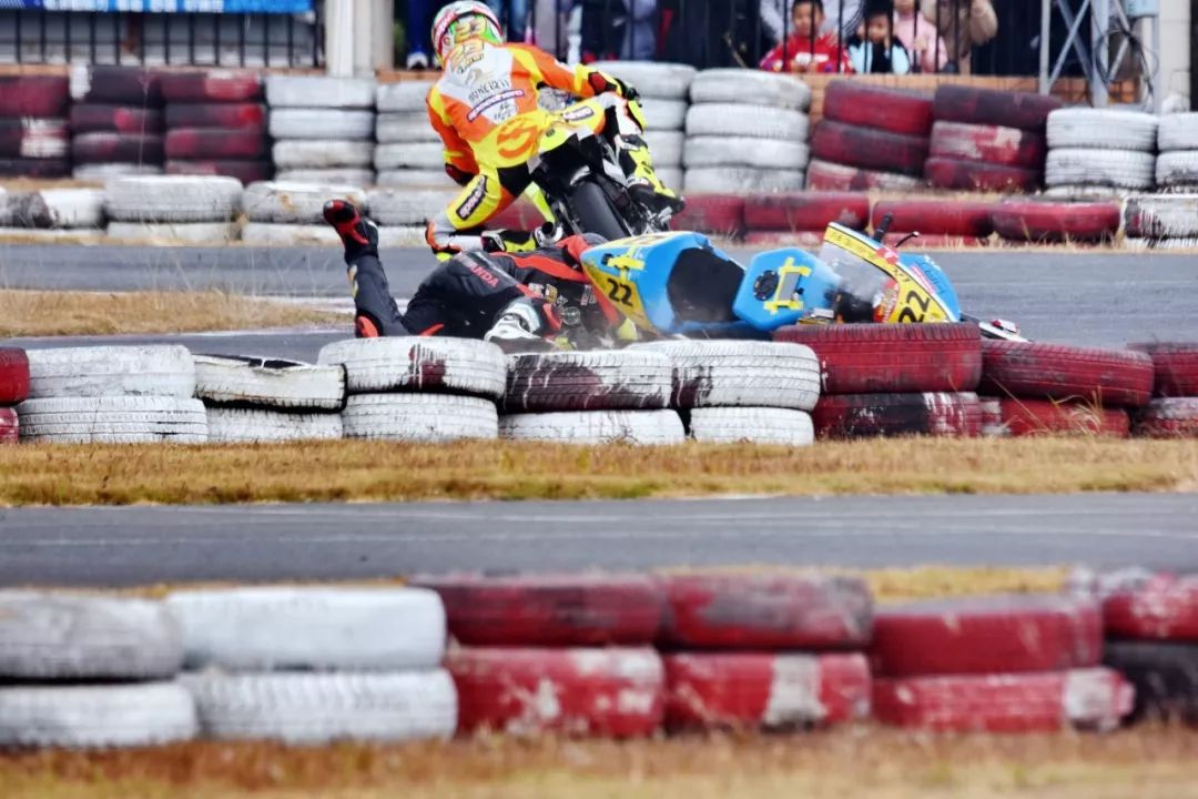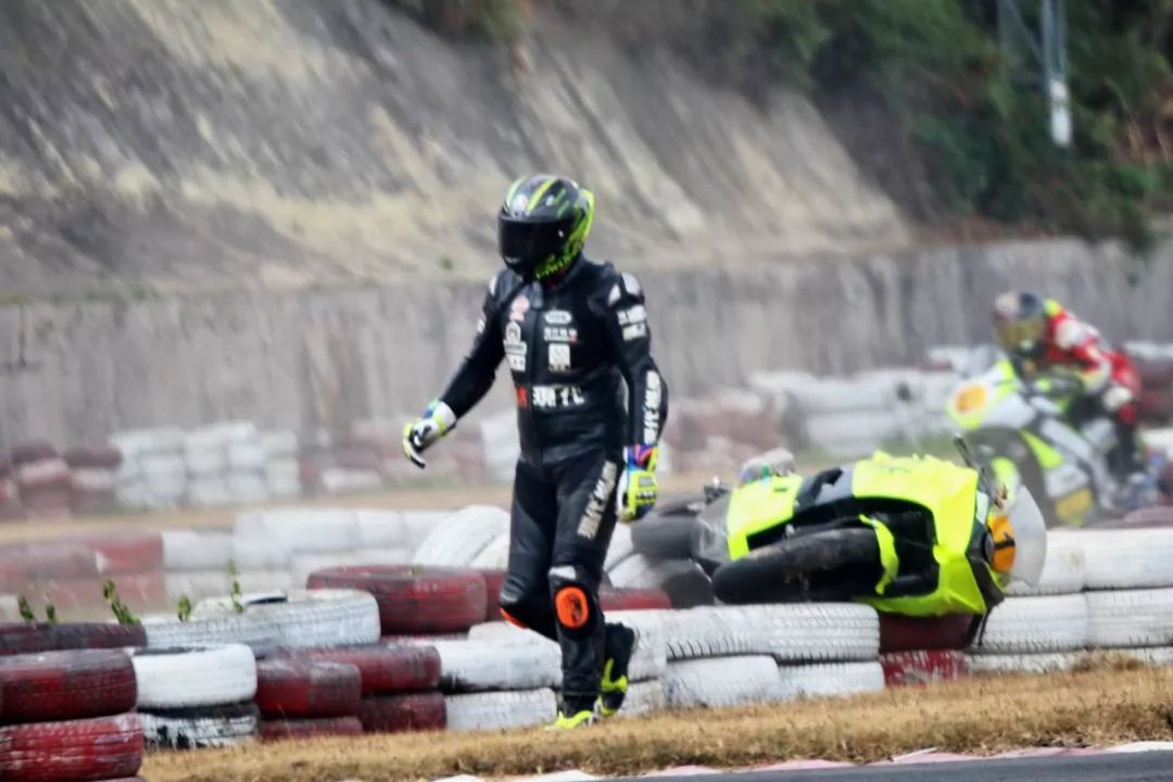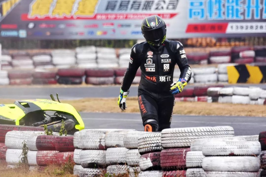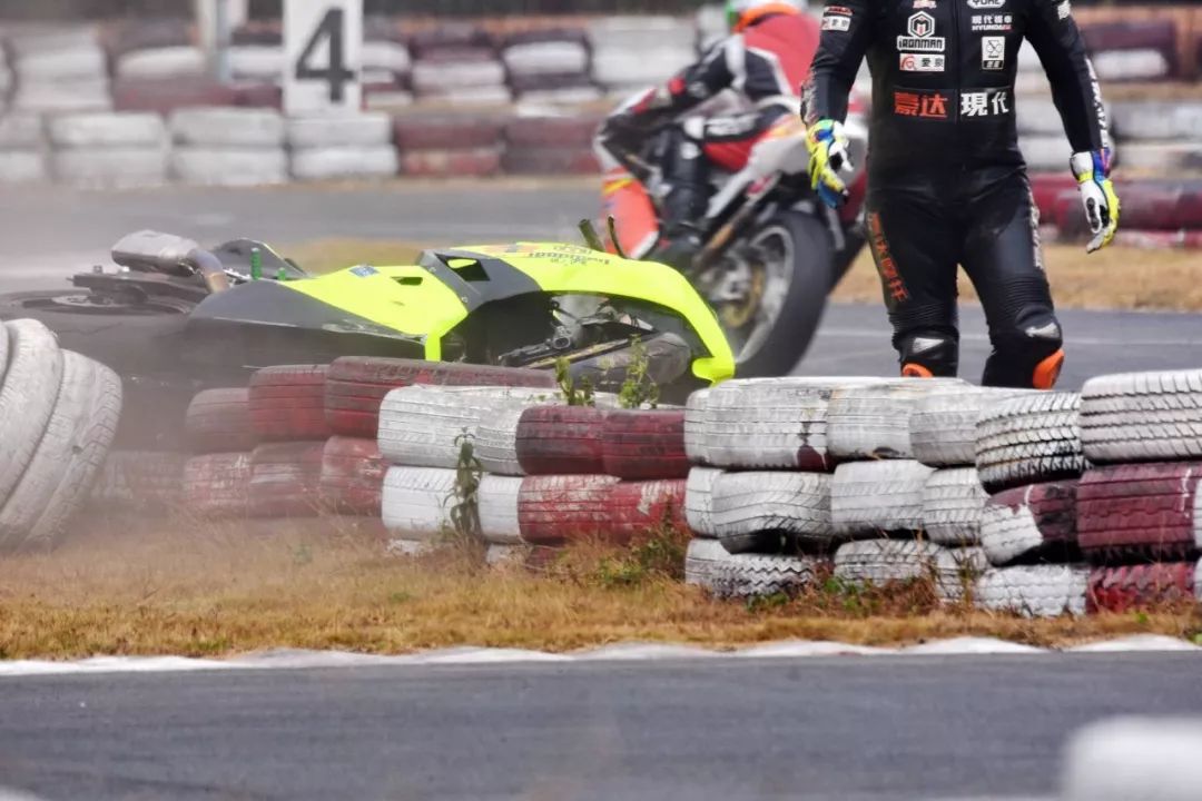 在第一節(jié)比賽的初段,駕駛 1 號車的陳澤南、因與 6 號車的張浪在彎前發(fā)生擦碰而摔到,賽車看起來受損嚴重,被迫退出了比賽。