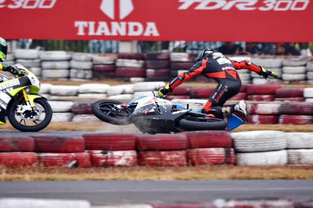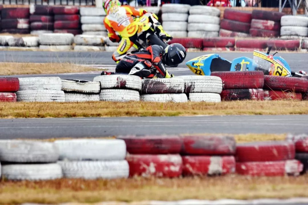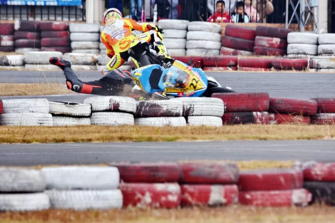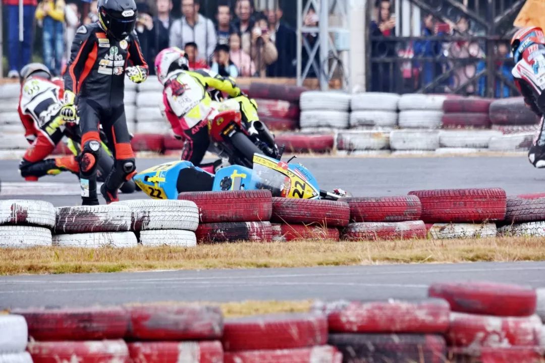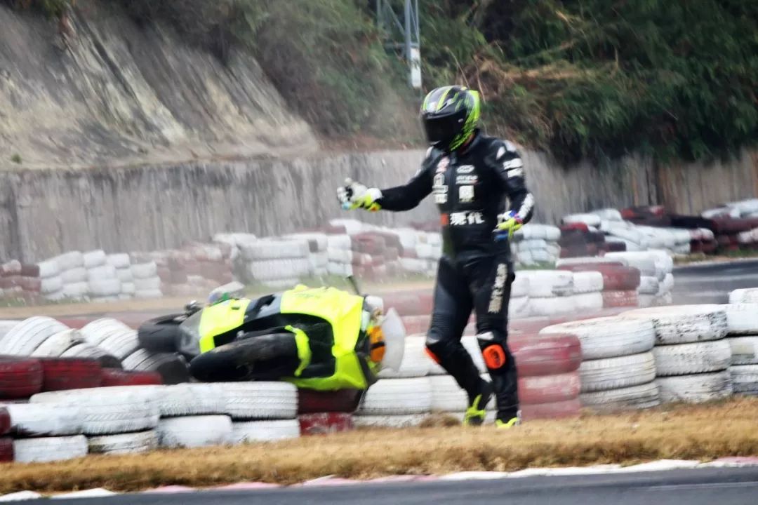 在第一節(jié)比賽的初段,駕駛 1 號車的陳澤南、因與 6 號車的張浪在彎前發(fā)生擦碰而摔到,賽車看起來受損嚴重,被迫退出了比賽。