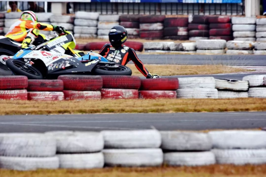 下面的圖片,改裝街車公開組第一節(jié)比賽、熱身圈,駕駛 22 號車的慕容志釗因為操之過急而摔了一跤,但他最后仍能順利發(fā)車并完成比賽。