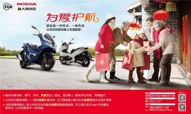 核心提示:今年的年,比以往更早,回家的路,因它變得溫暖。從2016年到2020年,新大洲本田為愛(ài)護(hù)航活動(dòng)已連續(xù)開(kāi)展5年,為眾多過(guò)年回家的用