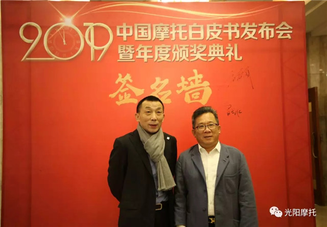 常州光陽(yáng)摩托車(chē)有限公司 副董事長(zhǎng) 李智誠(chéng)與摩托車(chē)信息雜志社社長(zhǎng)、總編 李學(xué)平合影