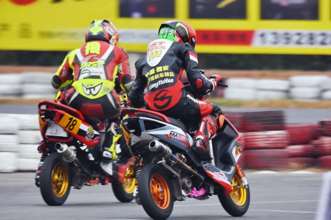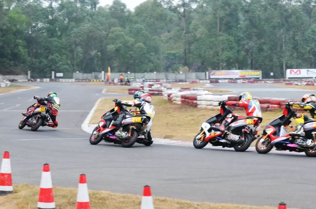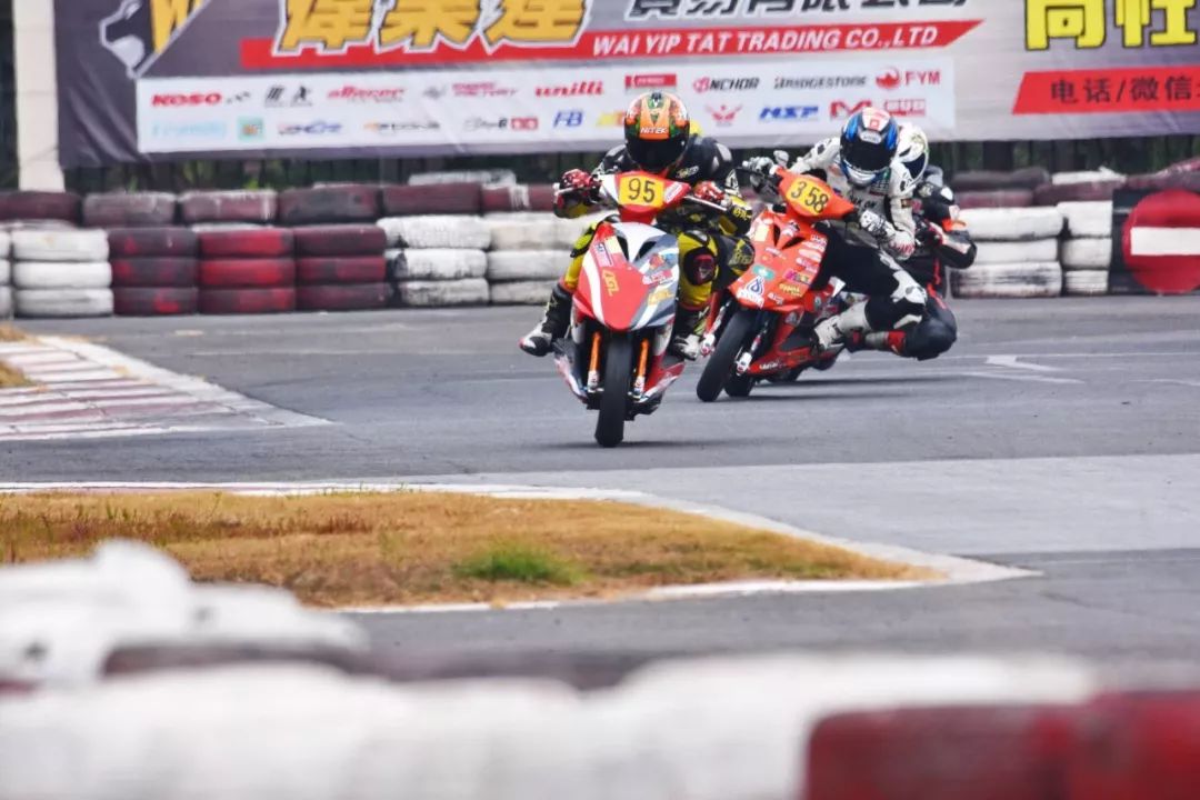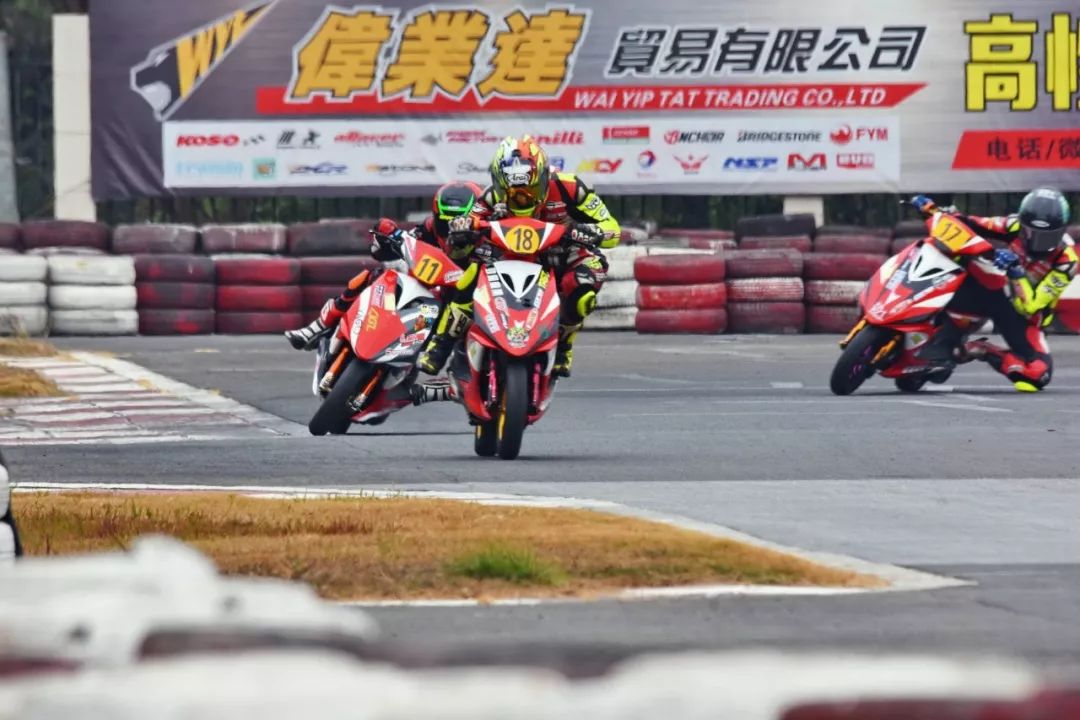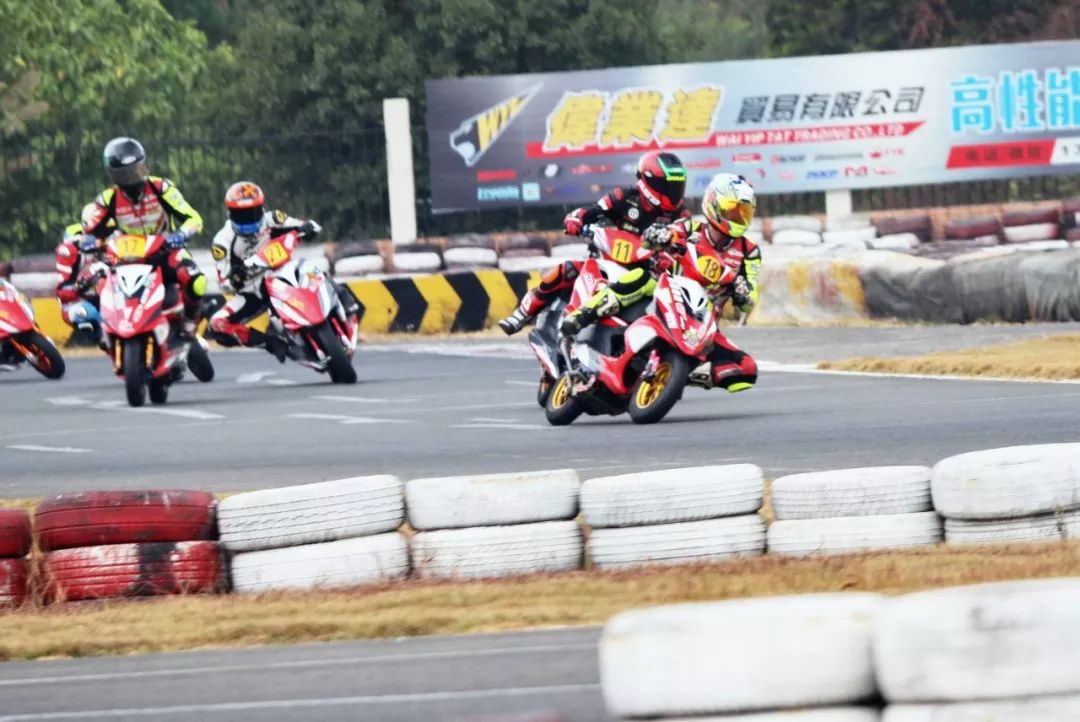 下面的圖片,2019' 三水偉業(yè)達(dá)杯第四回合,艾瑞森輪胎改裝踏板 150 cc 公開組、第一節(jié)比賽,激烈爭奪的瞬間剪影。