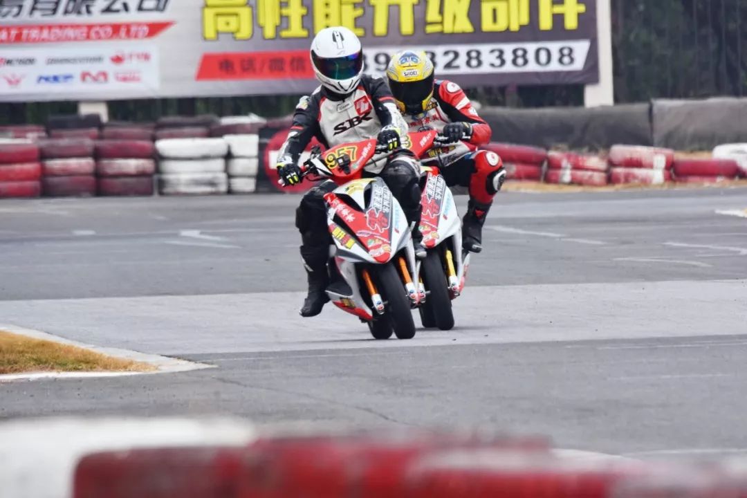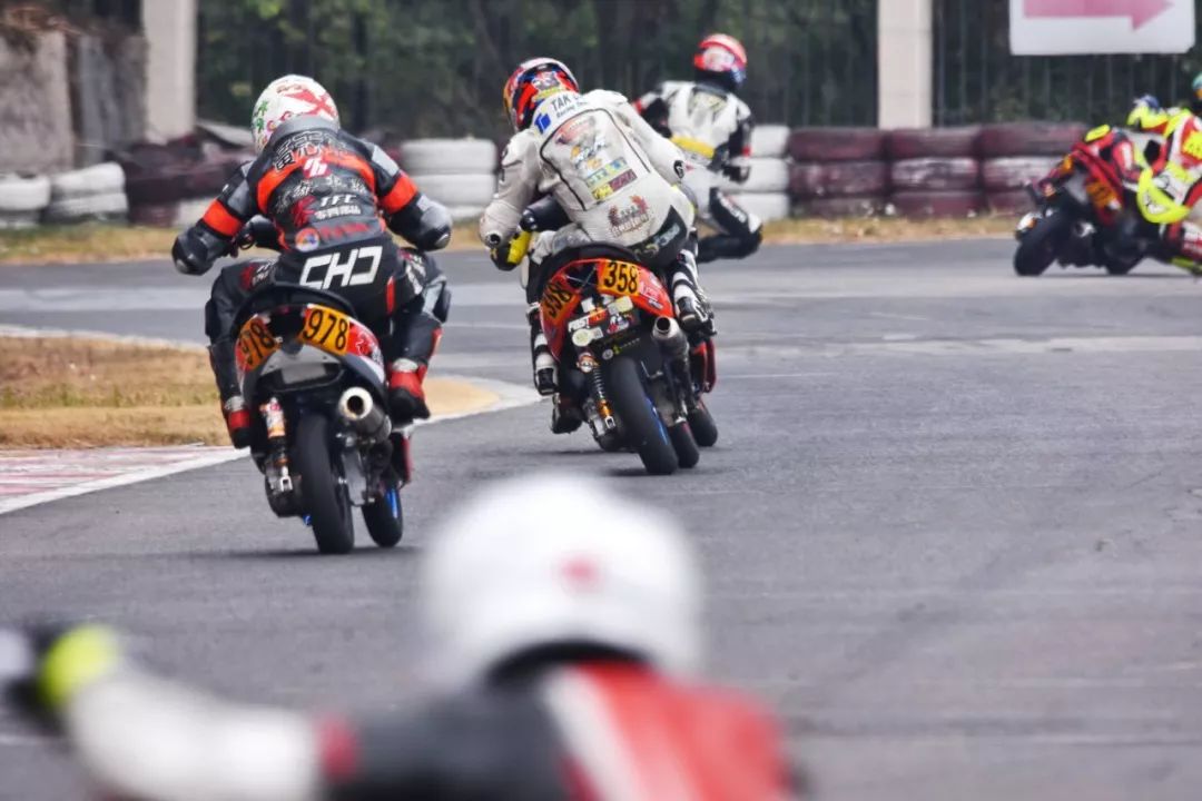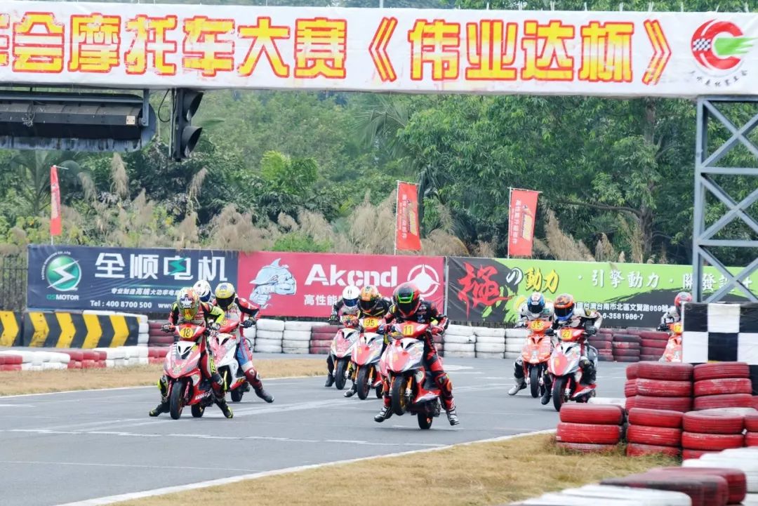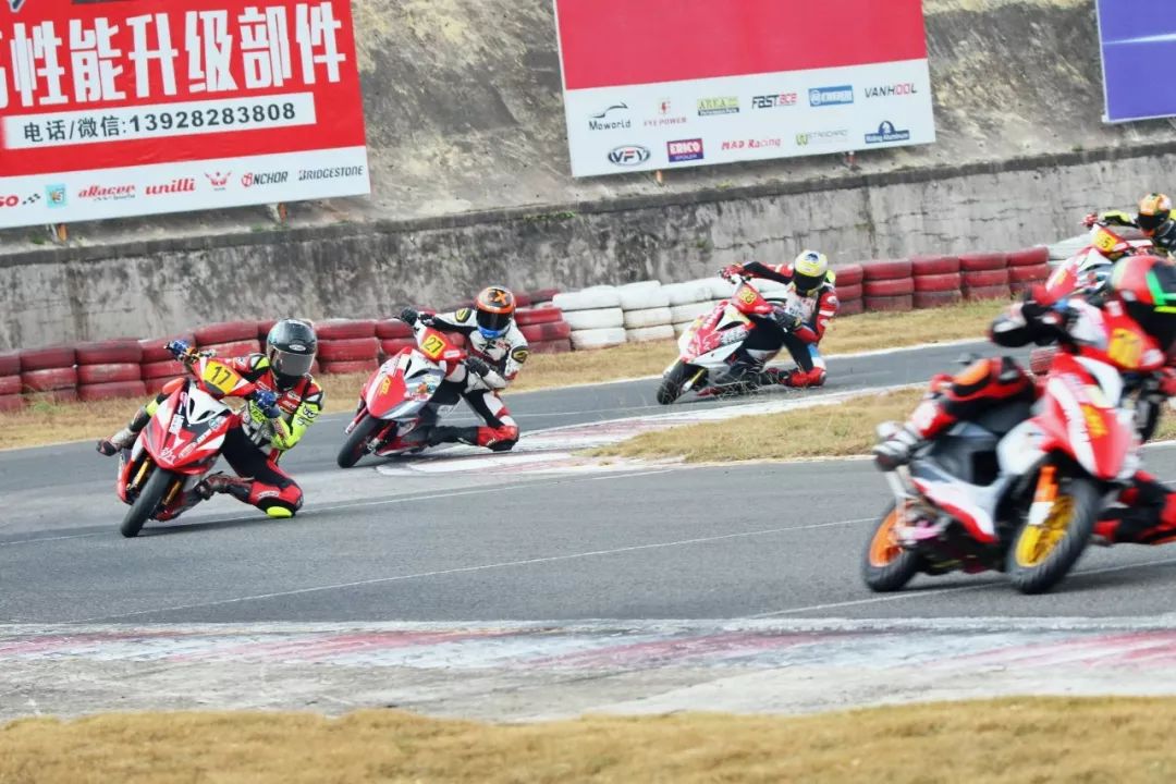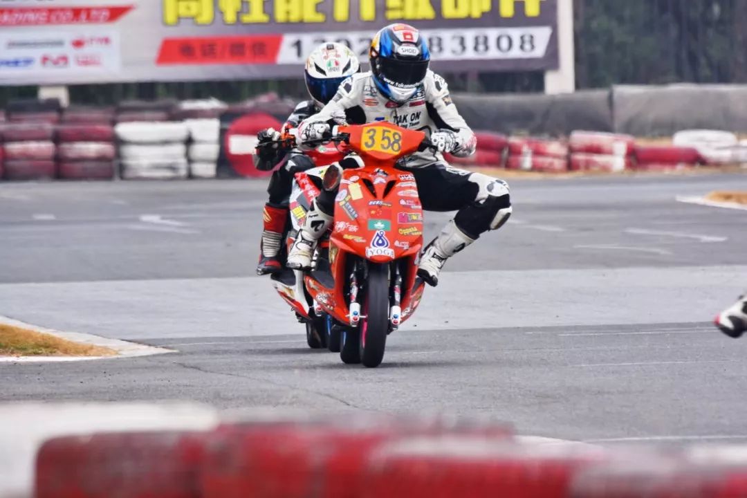 下面的圖片,2019' 三水偉業(yè)達(dá)杯第四回合,艾瑞森輪胎改裝踏板 150 cc 公開組、第一節(jié)比賽,激烈爭奪的瞬間剪影。