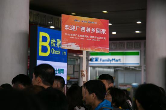 世界再大,也要回家過年。為助力粵港澳大灣區(qū)建設(shè),解決外來務(wù)工者的購票難等問題,2020年1月15日,由新浪廣東聯(lián)合廣鐵集團(tuán)共同發(fā)起的 “幸福列車——‘向美好生活出發(fā)’廣西專列”D3616從廣州南站啟程直達(dá)南寧東站,全程約3小時(shí),600余名廣西籍來粵務(wù)工人員踏上了幸?;丶抑谩?/span>