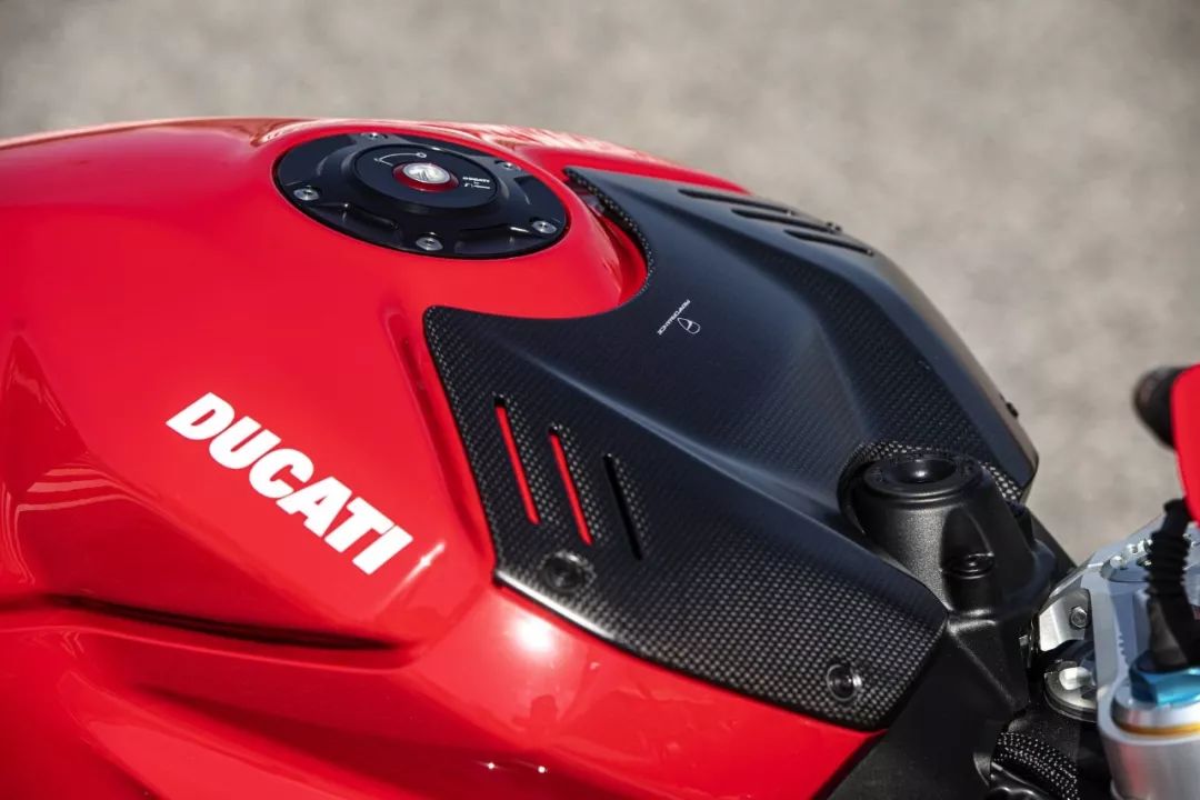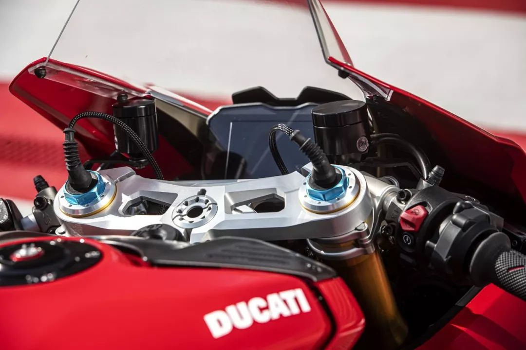 Panigale V4/V4S 搭載一副水冷 V 型 90 度四汽缸的發(fā)動(dòng)機(jī),排汽量 1,103 cc,標(biāo)準(zhǔn)狀態(tài)下的最大動(dòng)力輸出 157.5 kw(約 214 匹),而全車(chē)干燥重量只有 175 公斤(V4)/174 公斤(V4S)。