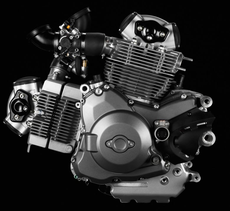 卡吉瓦的“猛禽”和杜卡迪的怪獸都出自于設計師蓋盧茲之手,他對NK車型的理念最權威不過了。“猛禽”的造型風格、車架設置、細節(jié)琢磨都經(jīng)過他的精細推敲,輻射出強烈的暴力之美。在動力裝置方面,為了超越杜卡迪怪獸,蓋盧茲作了全面的比較,他認為:“發(fā)動機到處都是,但是我們認為,最適合‘猛禽’的發(fā)動機有兩款,其一是凱旋Speed Triple的并列三缸發(fā)動機,其二就是鈴木TL1000的并列雙缸。實事求是地說,兩臺動力心臟都很贊,既動力充沛,又很有個性。但最后我們決定用鈴木發(fā)動機。