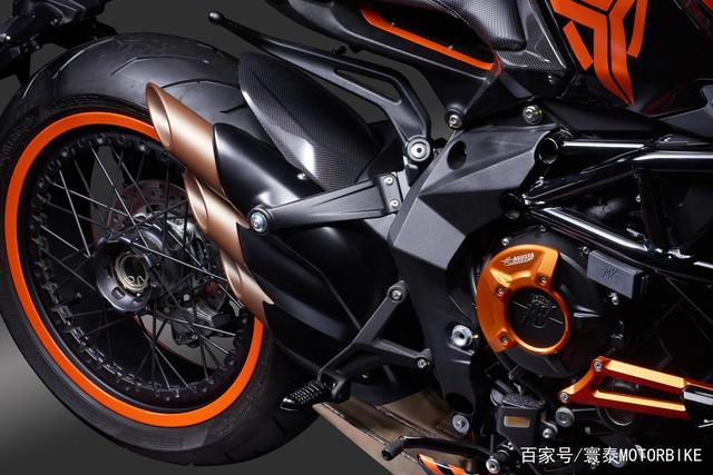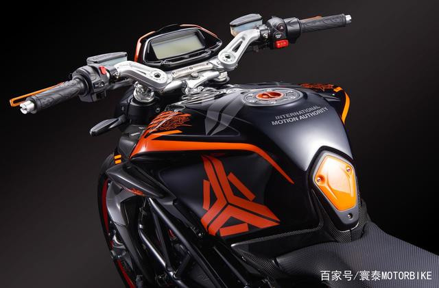 黑色和橙色的有機(jī)搭配,制造出對(duì)比鮮明的配色方案,展現(xiàn)了Dragster 800 RR頑強(qiáng)、熾熱的特征,與TheArsenale的卓越理念完美結(jié)合,呈現(xiàn)出純粹的視覺盛宴。只需多看一眼,你便被深深吸引。