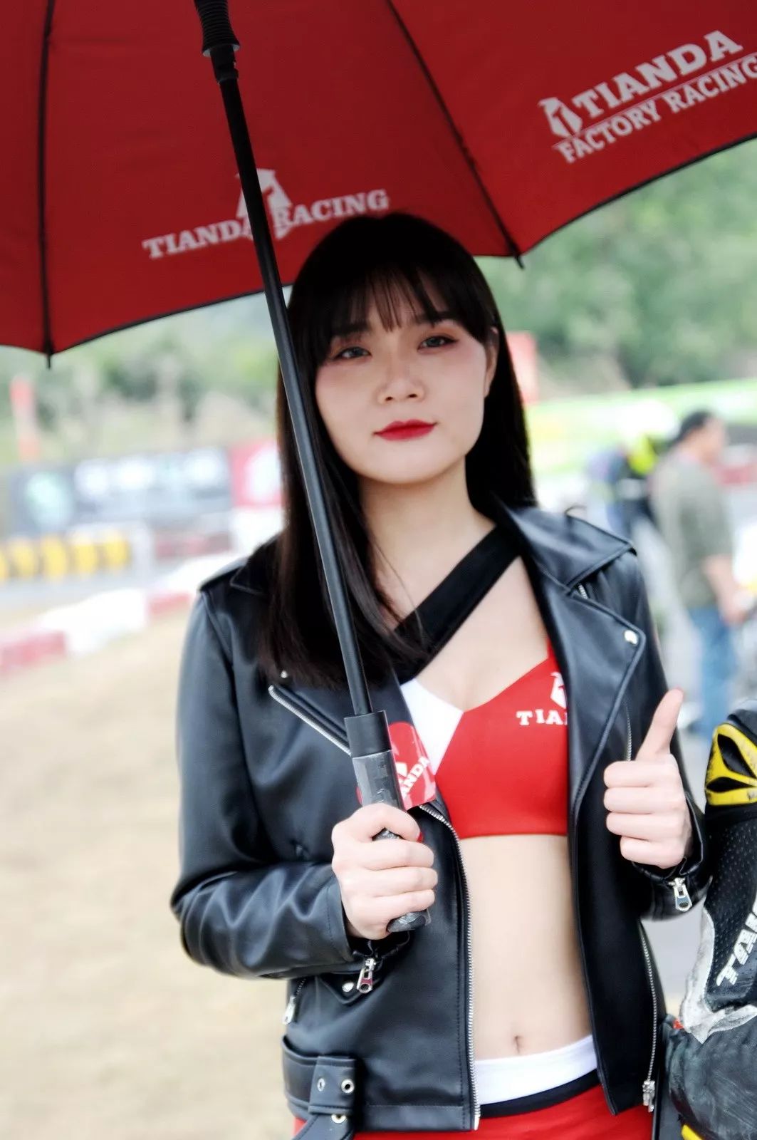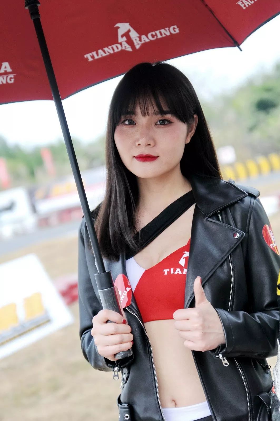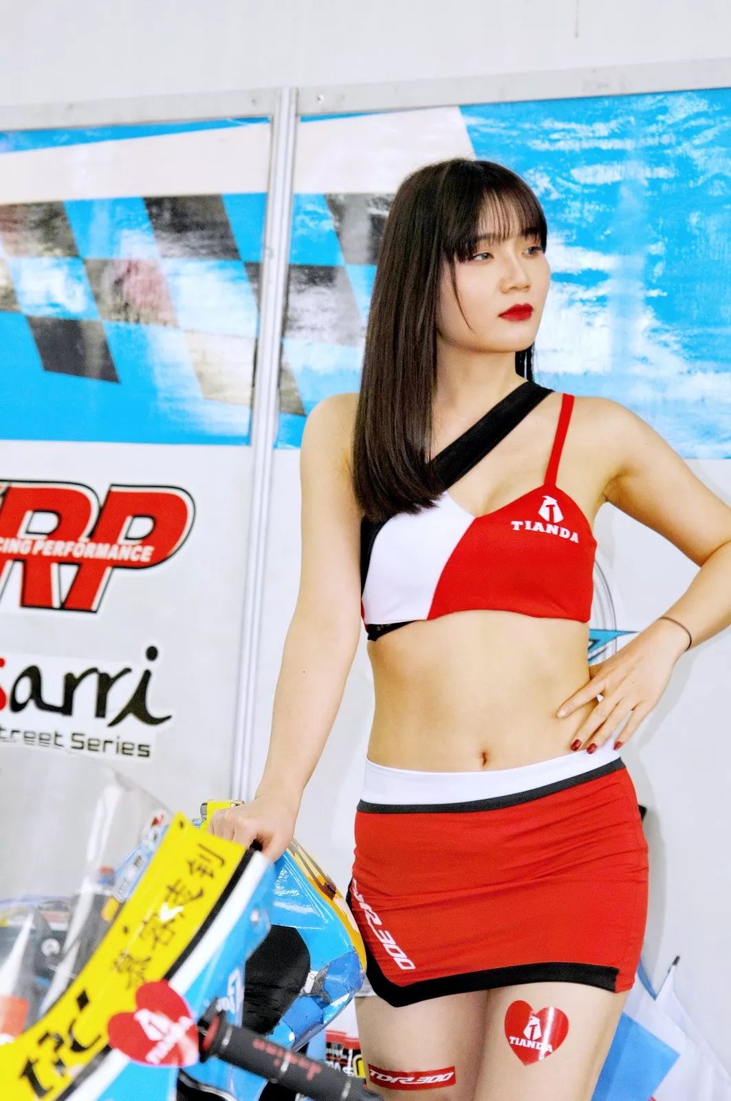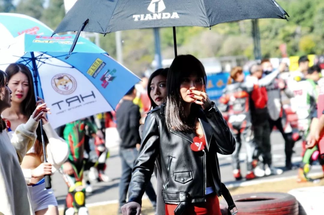 下面的圖片、比賽現(xiàn)場的賽車女郎。