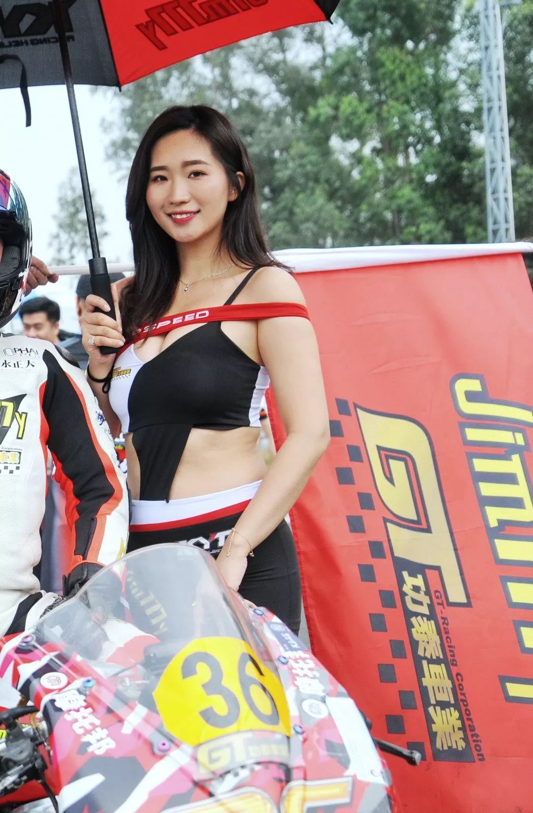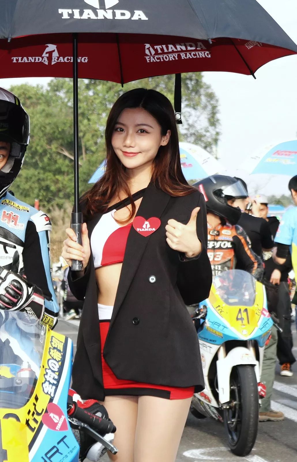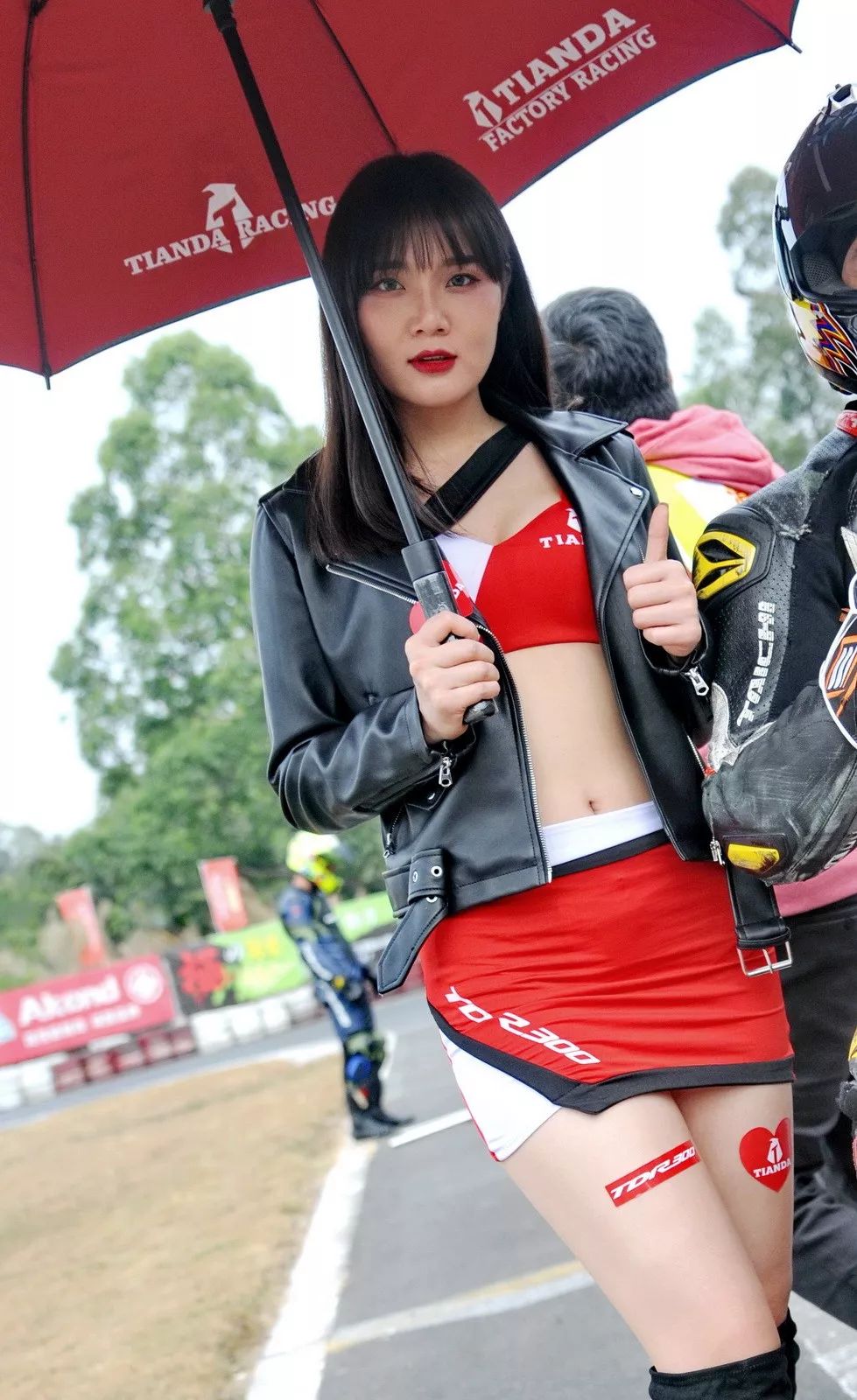 下面的圖片、比賽現(xiàn)場的賽車女郎。