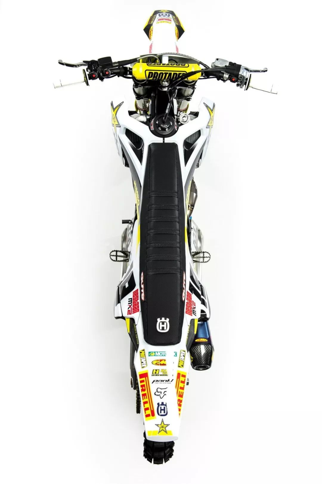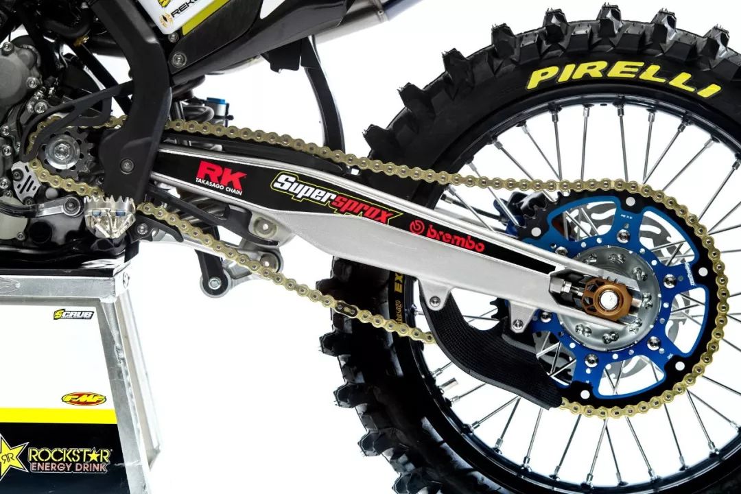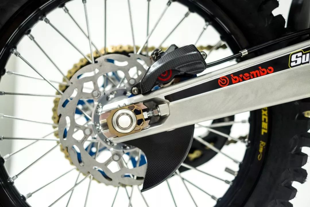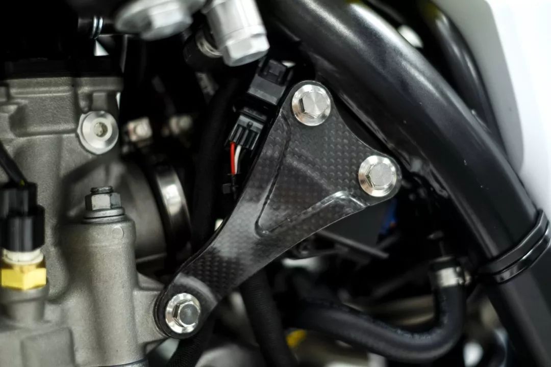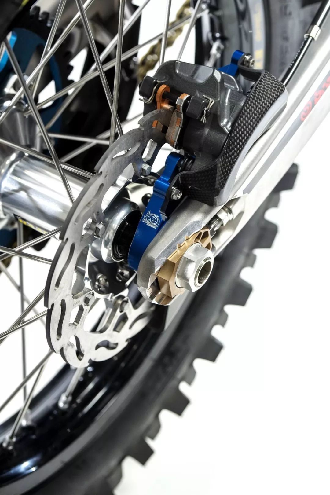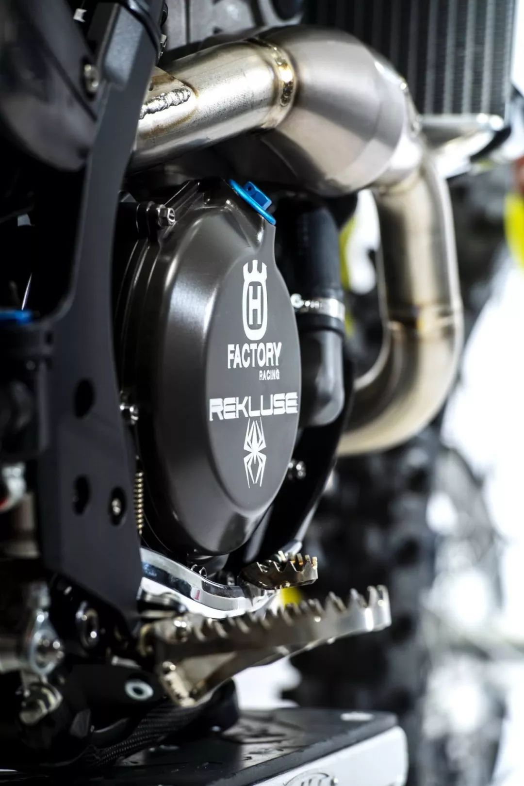 工廠賽車版的 FC250、發(fā)動(dòng)機(jī)經(jīng)過了深度的調(diào)校,換裝了 Rekluse 的強(qiáng)化離合器、FMF 的排汽系統(tǒng),賽車防滑鞍座,以及更高級別型號的 WP 前后懸掛、Brembo 剎車系統(tǒng),此外,輕量化和各種的補(bǔ)強(qiáng)組件、在車身上也隨處可見。