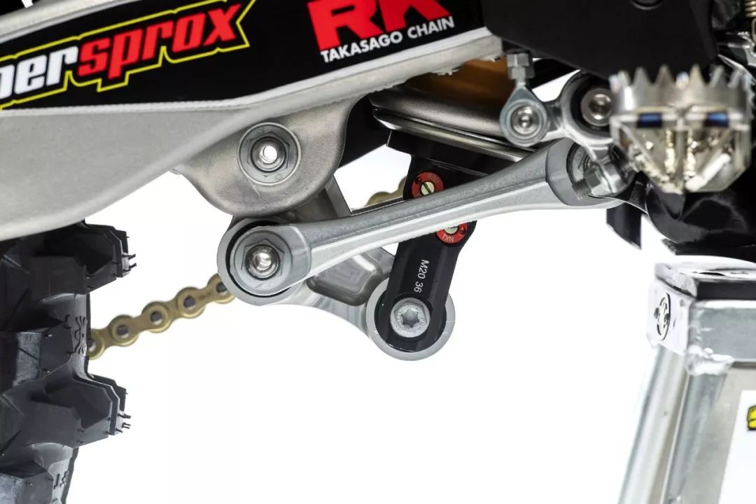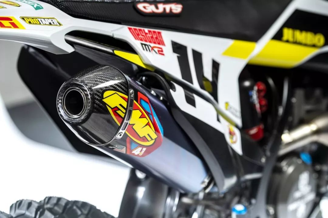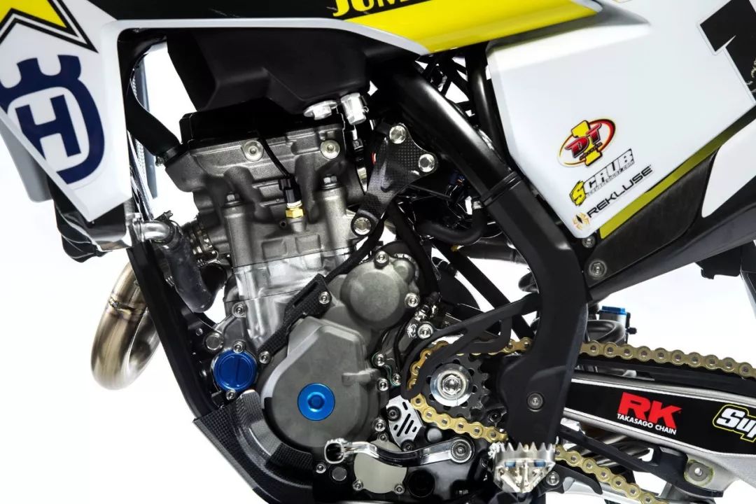對應(yīng) MX2 級別的工廠賽車是 FC250,市售標(biāo)準(zhǔn)版的 2020' FC250 搭載一副與 KTM SX-F250 同平臺的水冷四沖程單汽缸、DOHC 四汽閥發(fā)動(dòng)機(jī),排汽量 249.9 cc,配備了 Keihin 的電子燃油噴注/發(fā)動(dòng)機(jī)管理系統(tǒng)、德國賽車配套商 PANKL 制的五檔變速齒輪箱,最大動(dòng)力輸出 46 匹。車體采用一副輕量化設(shè)計(jì)的鋼管式車架、復(fù)合材料制的后樑(副車架),WP 的 XACT 懸掛系統(tǒng),Brembo 布博的制動(dòng)系統(tǒng)。