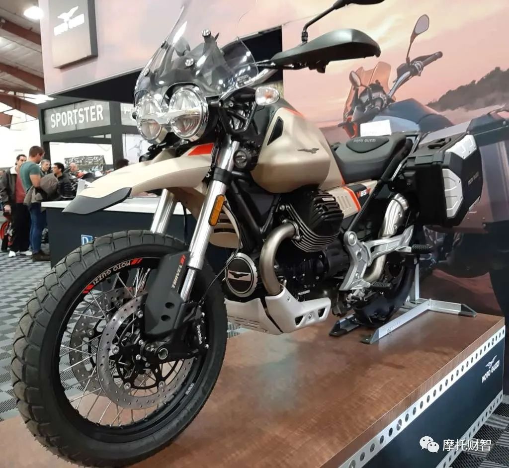 Moto Guzzi一輛漂亮的冒險(xiǎn)摩托車。V85TT,配備一個(gè)23升的油箱和一個(gè)850cc的發(fā)動(dòng)機(jī),有著不錯(cuò)的續(xù)航能力和通過性。
