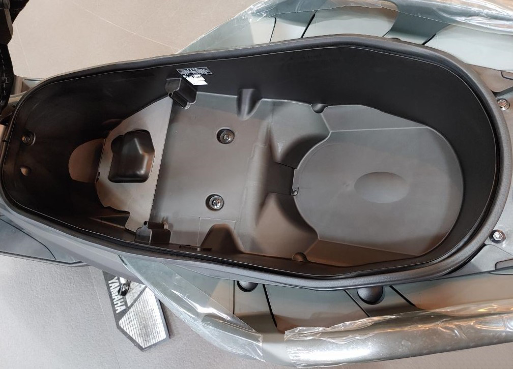 電動開啟的座位下有著非??捎^的座桶空間,可收納兩頂全盔以及雨衣之類的物品,可以說這個儲物空間已經(jīng)非常能裝了。根據(jù)這個座桶空間的長度,應(yīng)該可以放下羽毛球球拍等長型物件,總之對于一臺中型踏板摩托車,這個儲物空間真的是挑不出瑕疵。