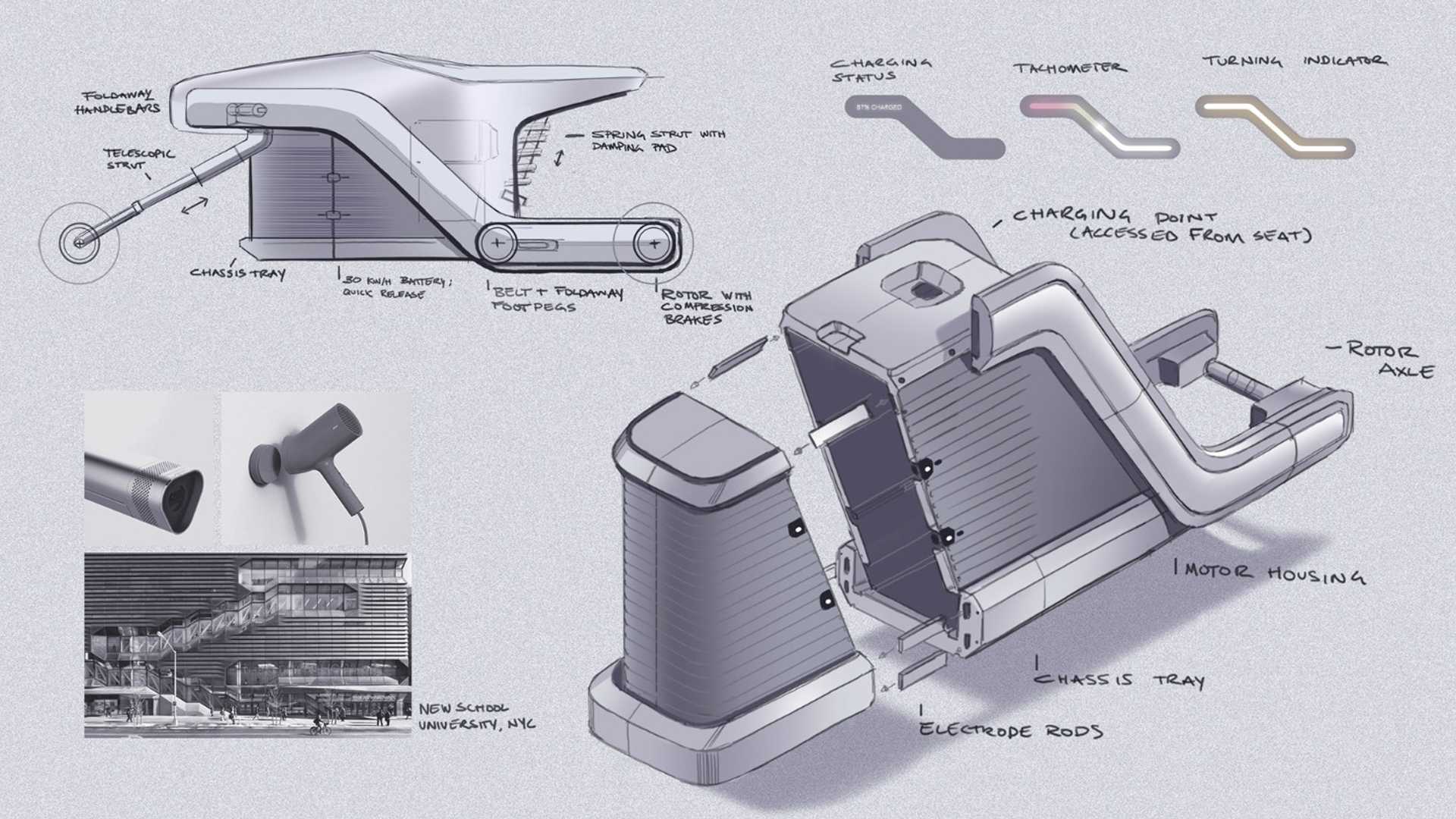 Z字型的電動摩托它沒有隸屬于任何特定品牌,也沒有利用現(xiàn)有的生產(chǎn)摩托車設(shè)計,騎手坐在這一切之上。折疊式車把和腳踏板等貼心功能增加了可用性和實用性。