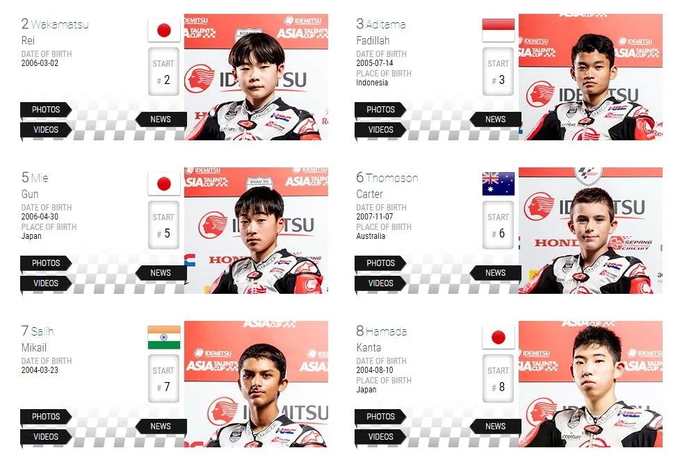 今年的正式參賽名單上,將有 18 位車手參與角逐(包括后備車手),來(lái)自六個(gè)不同的國(guó)家,其中日本車手最多、有五位。其中年紀(jì)最輕的是 6 號(hào)車、來(lái)自澳大利亞的 Carter Thompson,只有 12 歲。而年紀(jì)最大的是現(xiàn)年 18 歲的 13號(hào)車、來(lái)自馬來(lái)西亞的 Syarifuddin Azman。