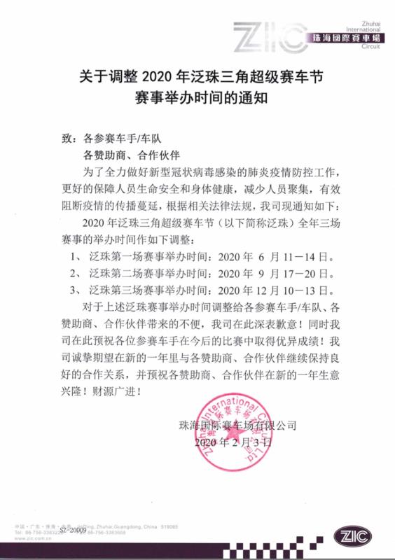 關(guān)于調(diào)整2020年泛珠三角超級賽車節(jié)舉辦時間的通知