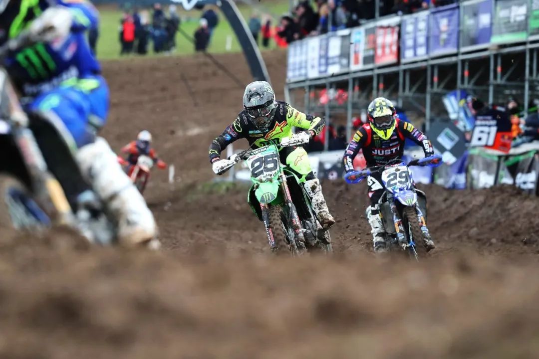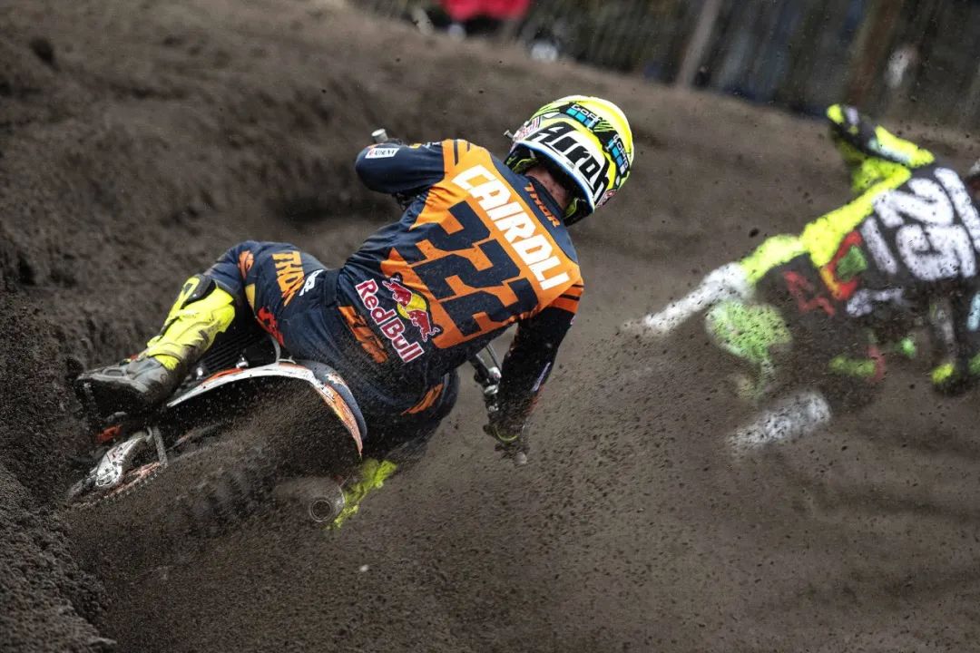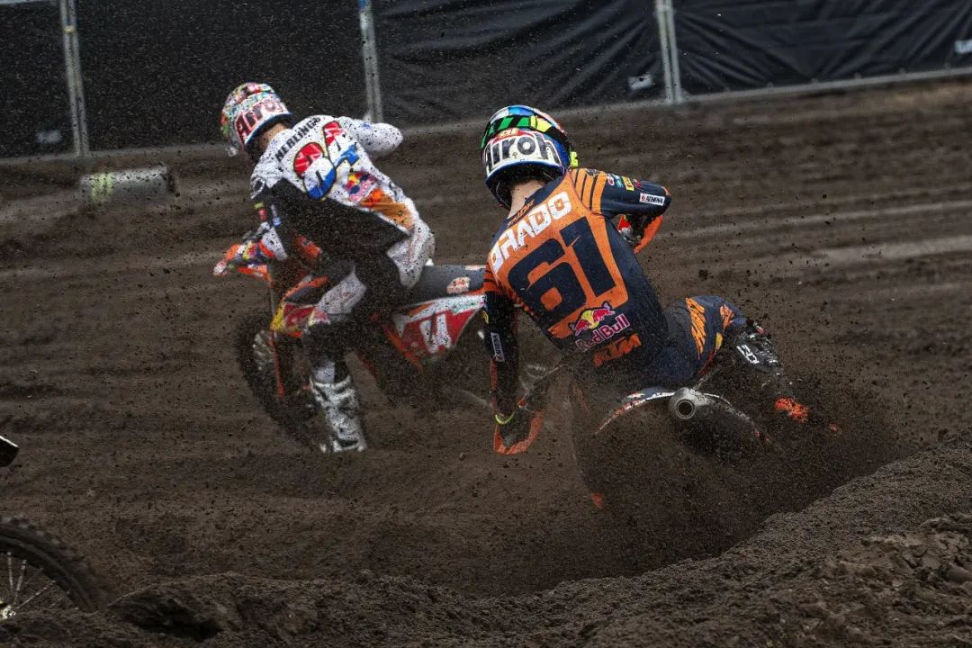 MX2 級別,駕駛 193 號車、Yamaha 工廠車隊的吉斯(Jago Geerts),以及 KTM 工廠車隊、駕駛 28 號車的維亞尼(Tom Vialle),分別奪得了第一、第二節(jié)比賽的冠軍。